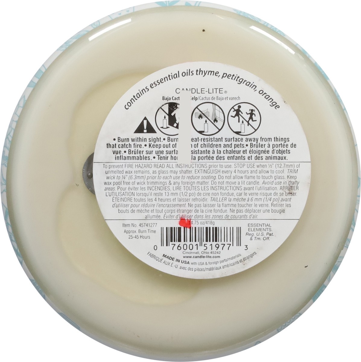 Essential Elements - Candle-Lite Company. Transport your mind. Essential oils. Burn time up to 45 hrs. 3 Wick candle. Soothing thyme, orange, & cedarwood essential oils are the ultimate refreshing ble…