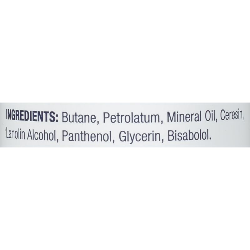 Butane, Petrolatum, Mineral Oil, Ceresin, Lanolin Alcohol, Panthenol, Glycerin, Bisabolol