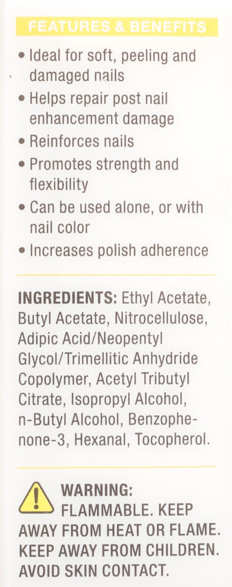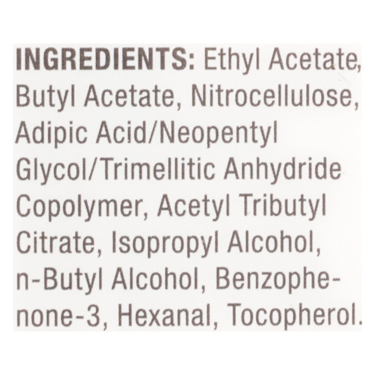 Ethyl Acetate, Alcohol Denat., Butyl Acetate, Nitrocellulose, Tosylamide/Formaldehyde Resin, Acrylates Copolymer, Triphenyl Phosphate, Trimethyl Pentanyl Diisobutyrate, Isopropyl Alcohol, Butyl Alcoho…