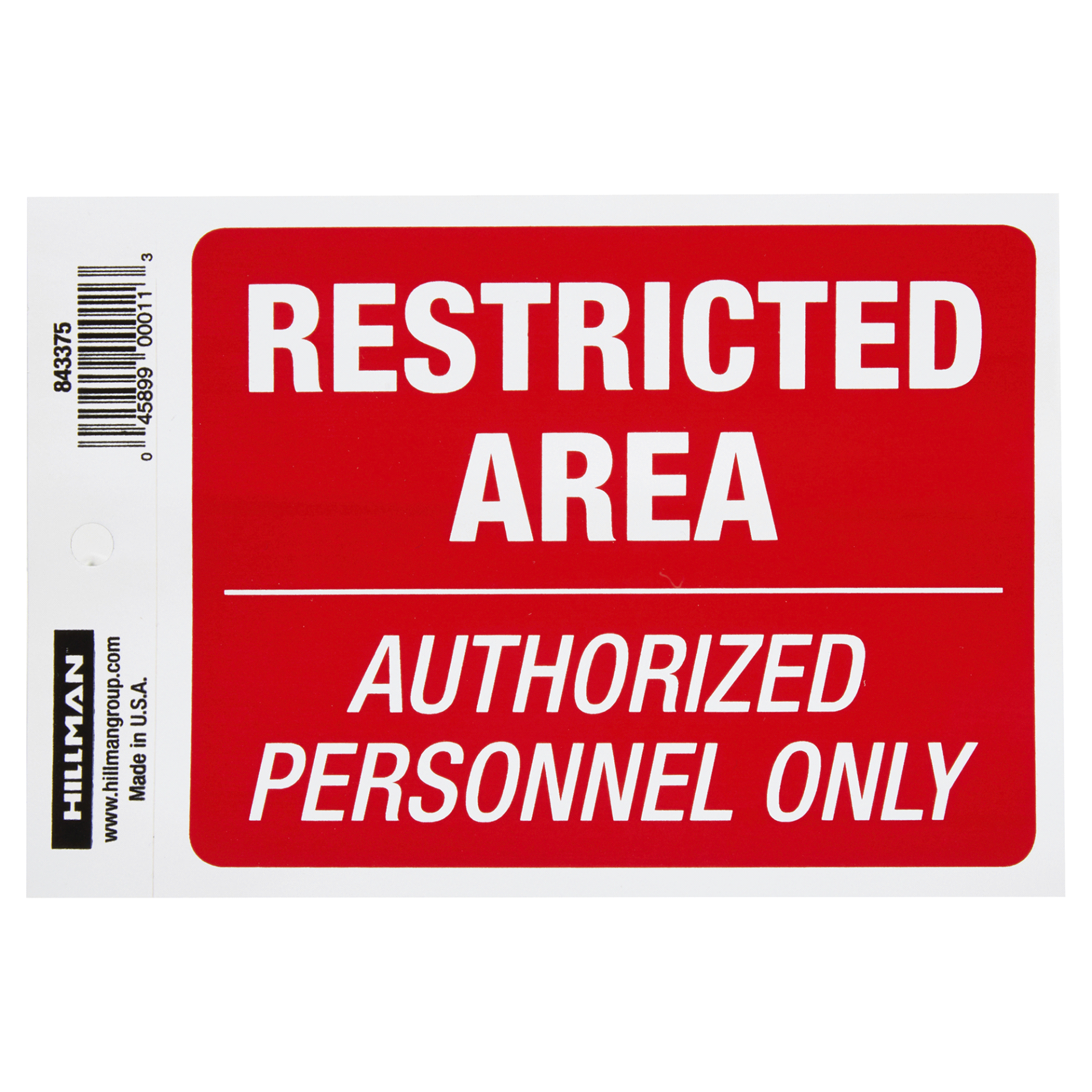 slide 1 of 1, Hillman Restricted Area Sign, 4" x 6", 1 ct