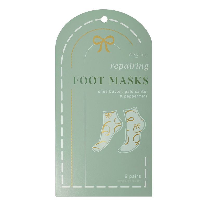 Recharge and soothe tired soles with SpaLife's Repairing Foot Masks. These sock-like foot masks feature a festive print and are infused with cooling peppermint, soothing palo santo, and ultra-rich she…