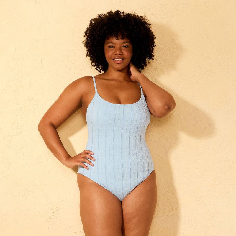 Women's Eyelet Scoop Neck Cheeky Coverage One Piece Swimsuit - Shade & Shore™ Blue M