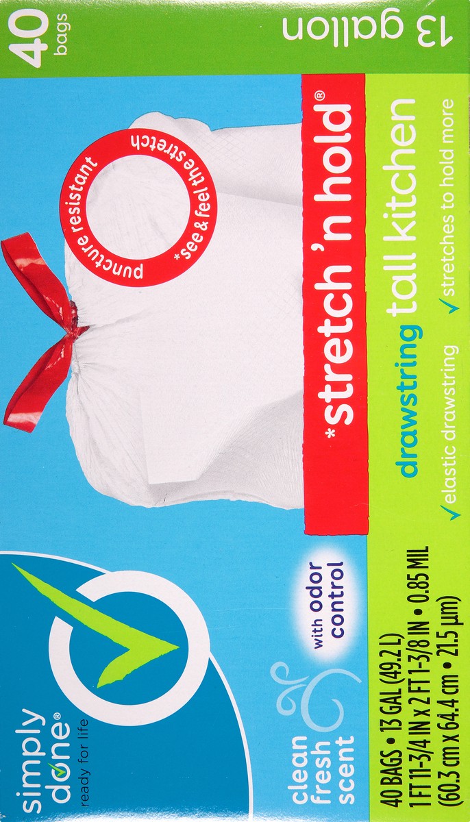 Simply Done Clean Fresh Scent Tall Kitchen Drawstring Trash Bags - 13 Gallon, 40 Count