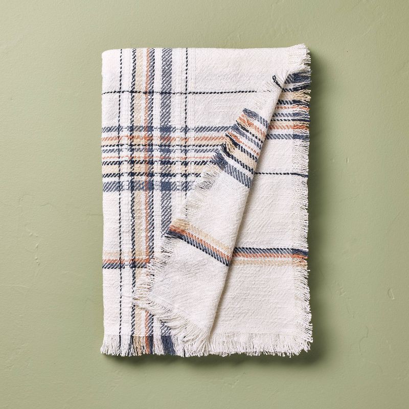 Bring a cozy, inviting vibe to your living space with this Plaid Woven Throw Blanket from Hearth & Hand™ with Magnolia. This woven throw blanket is adorned with a timeless plaid pattern and fringed ed…