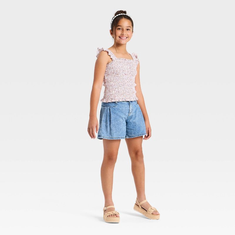 Girls' Mid-Rise Flowy Jean Shorts - Cat & Jack™ Light Wash S