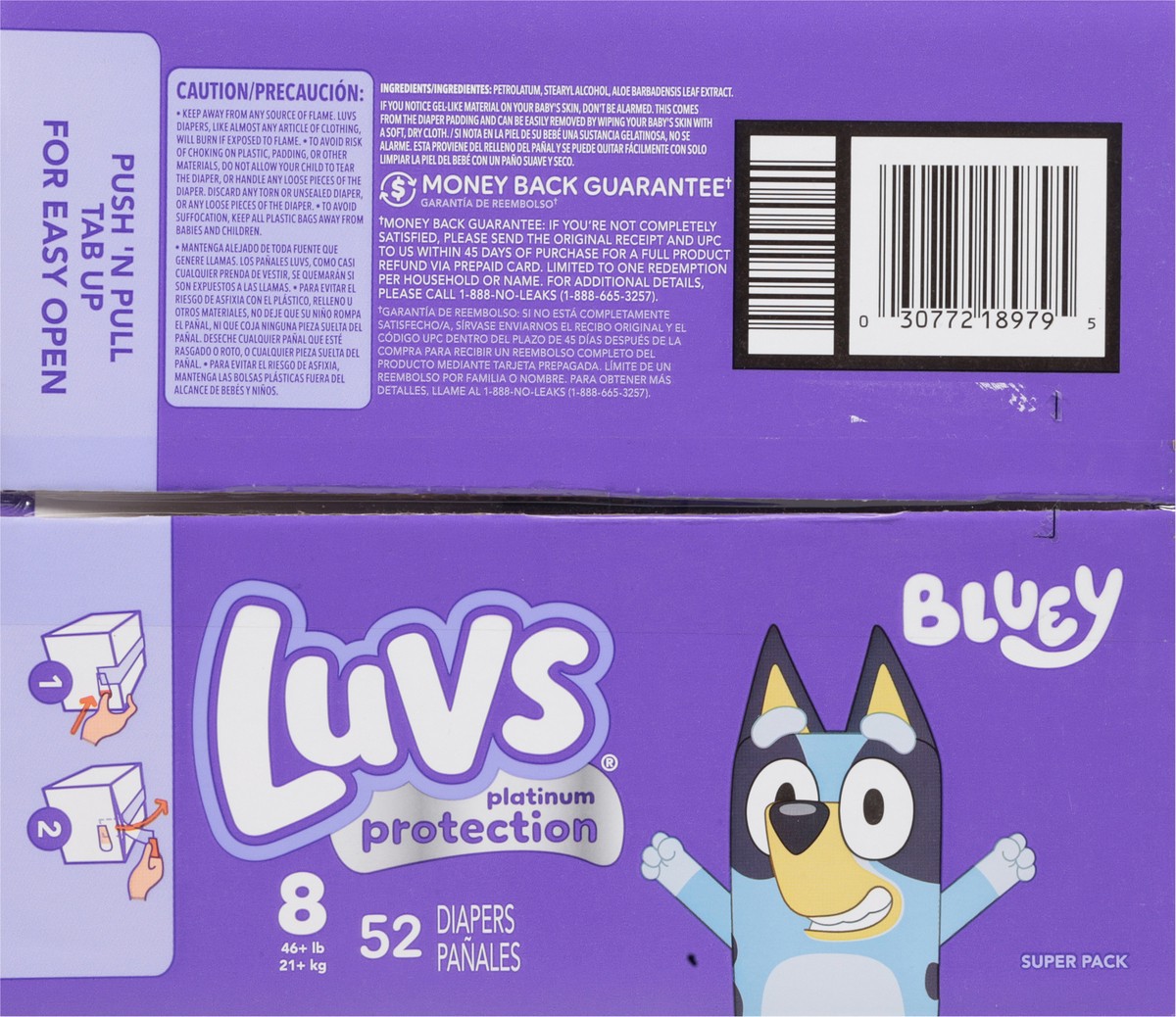 Luvs Platinum Protection Bluey Size 8 Diapers - 52 ct