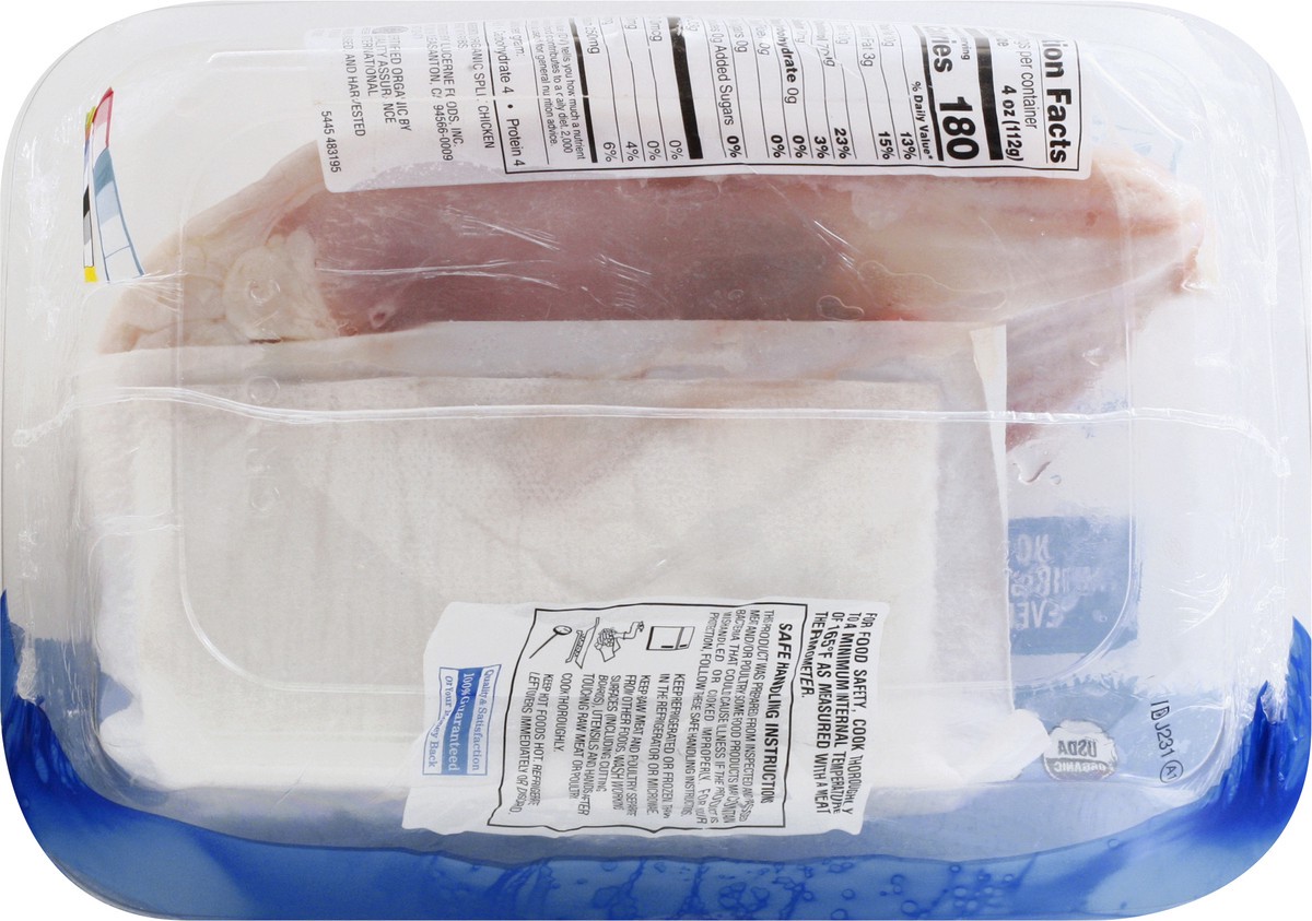 Air chilled. No antibiotics ever (chicken raised without antibiotics). Organic vegetarian fed. Free range.