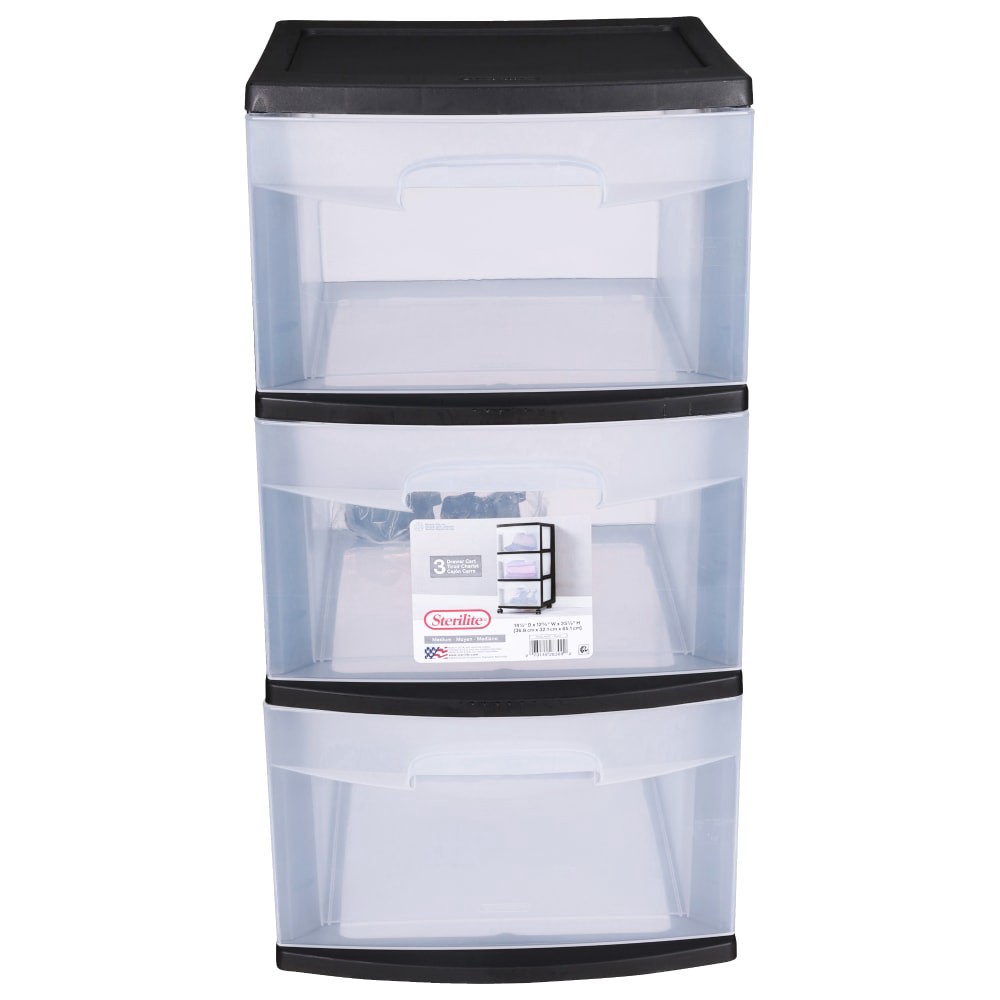 Sterilite Plastic 3-Drawer Cart - Black, 1 ct