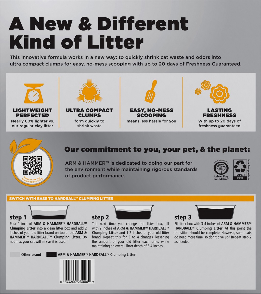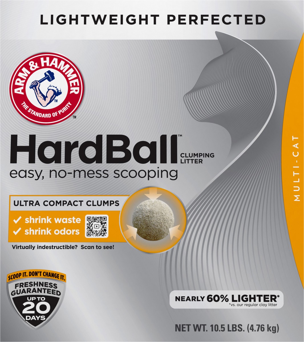 A lightweight cat litter with virtually indestructible clumps? Introducing ARM & HAMMER™ HardBall™ Clumping Cat Litter. The innovative formula works to quickly shrink cat waste and odors into ultra co…