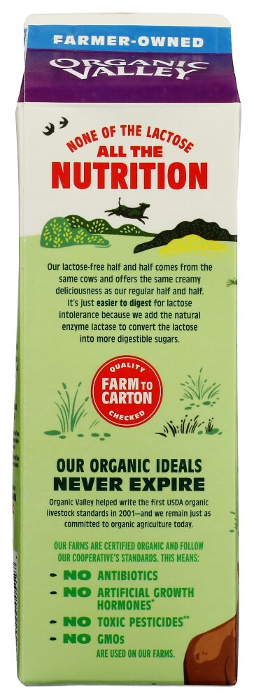 Organic Valley Organic, Lactose Free Half and Half is made with organic milk and cream from small family farms, where cows roam in lush pastures, giving you a delightfully creamy flavor. It's the perf…