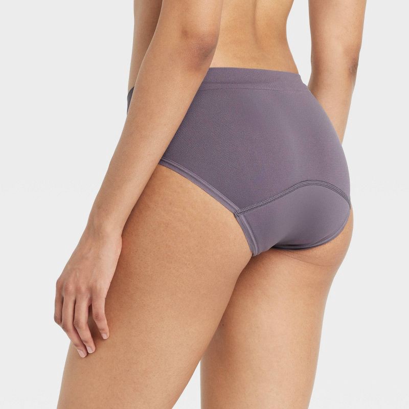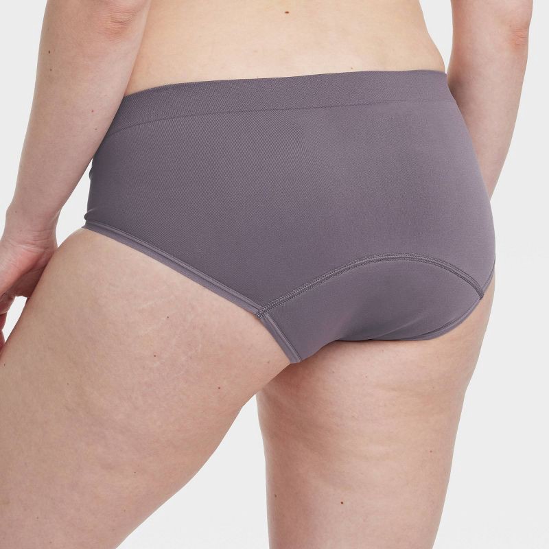 Women's Absorbent Seamless Hipster Period Underwear - Auden™ Mauve Gray S: Nylon-Spandex Blend, Midweight Knit, 4-Way Stretch