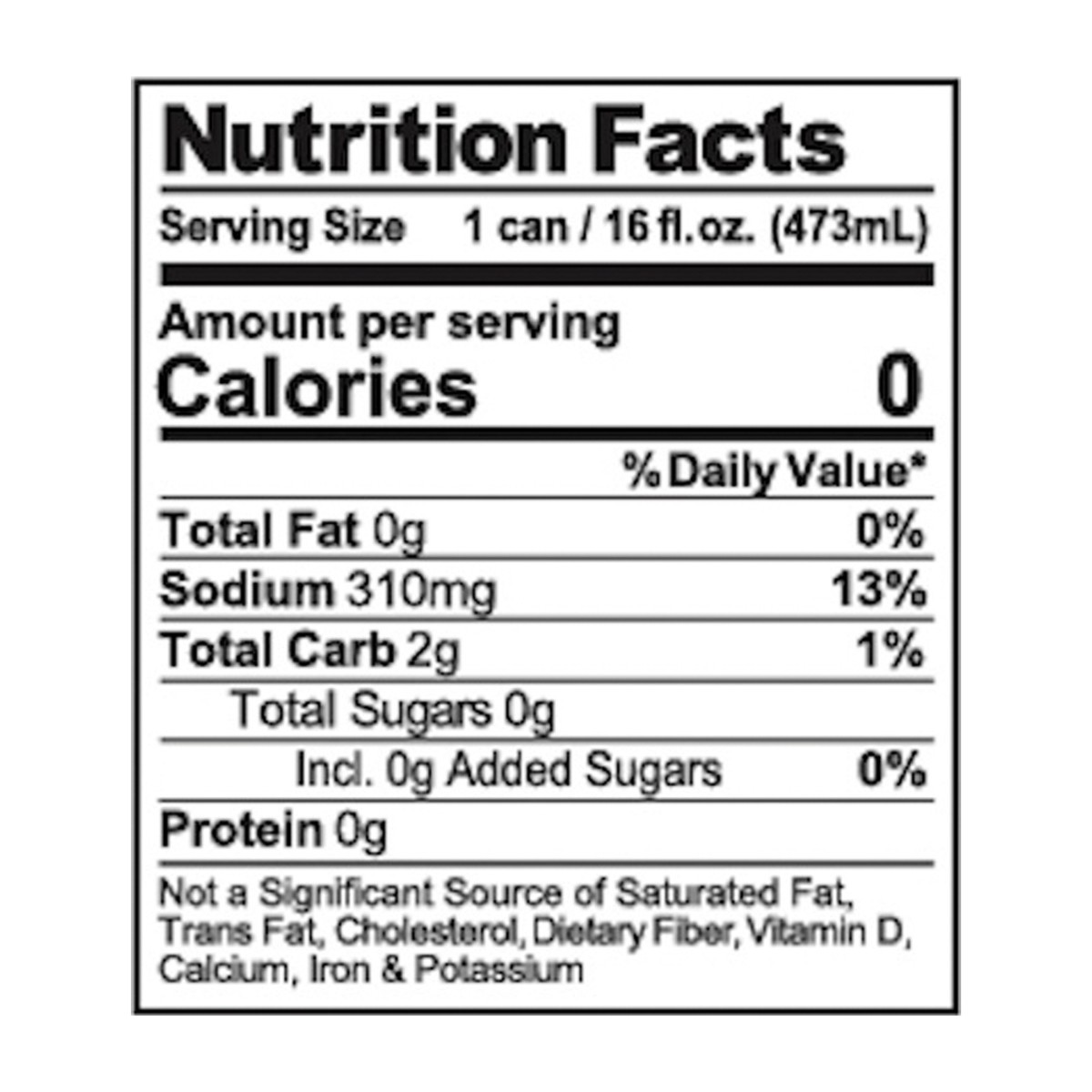 Water, Citric Acid, Natural Flavor, Sodium Citrate, Taurine, Beta Alanine, Maca Root, Caffeine, Sodium Benzoate, Sucralose, Panax Ginseng, Vegetable Juice (for Color).