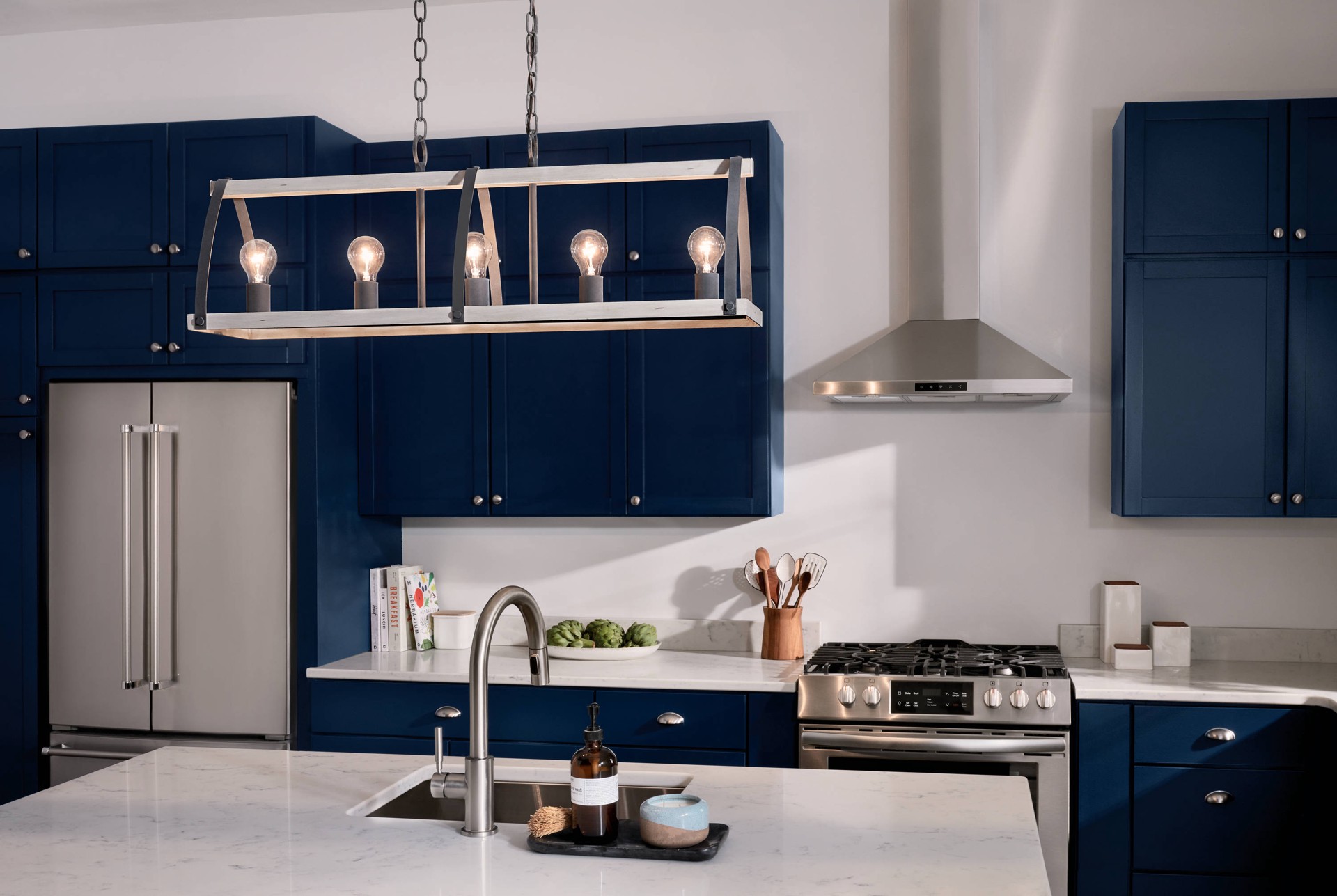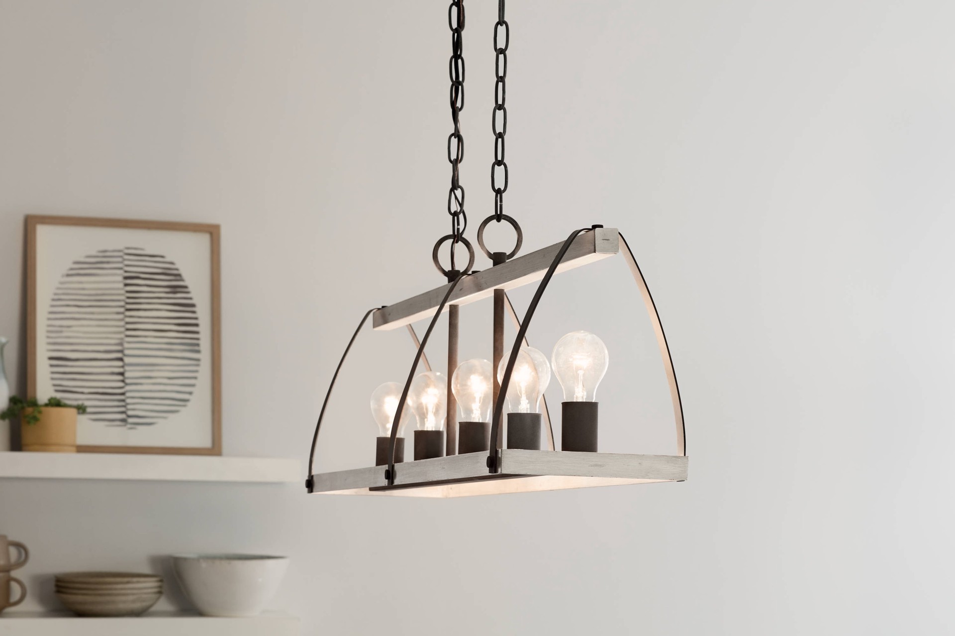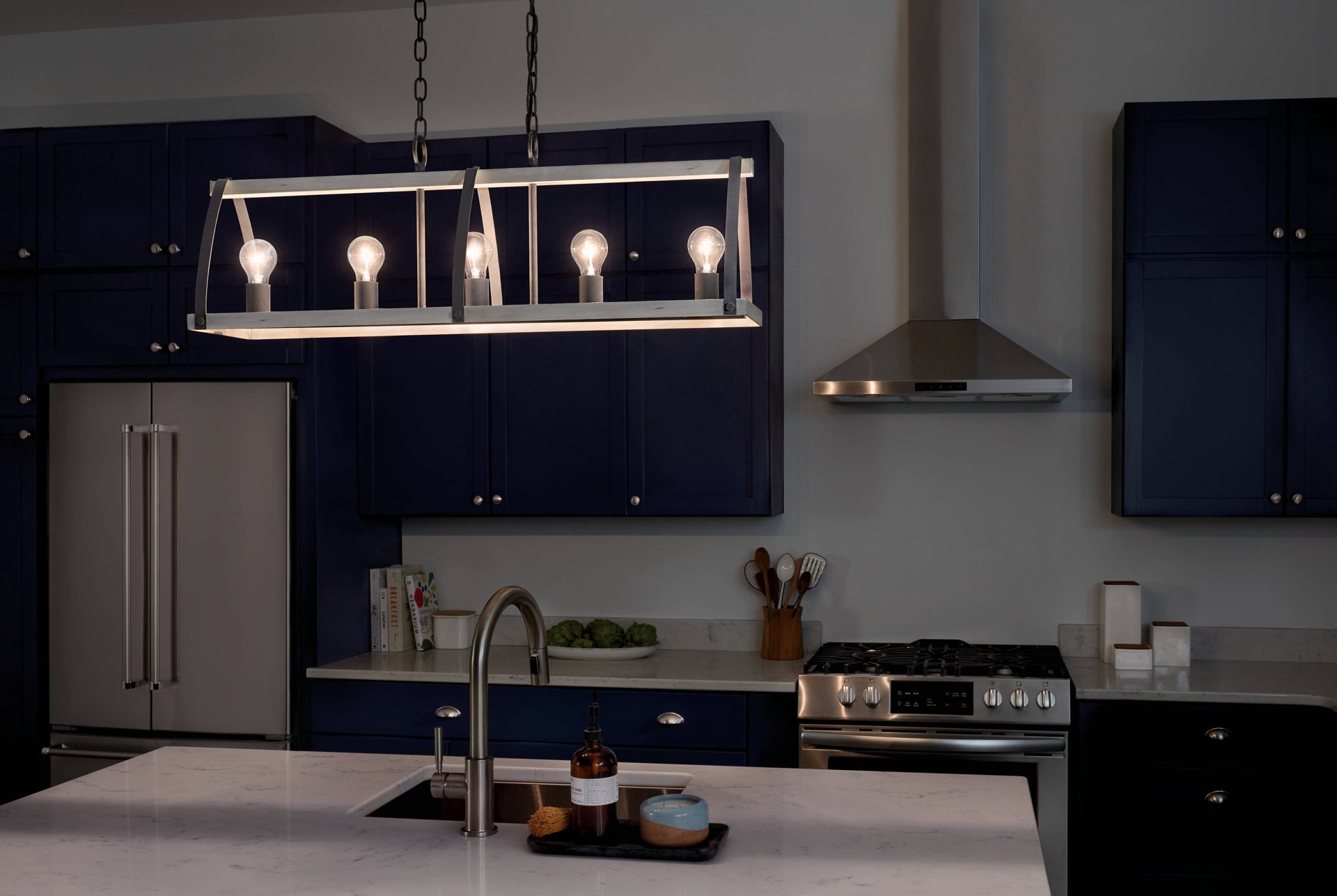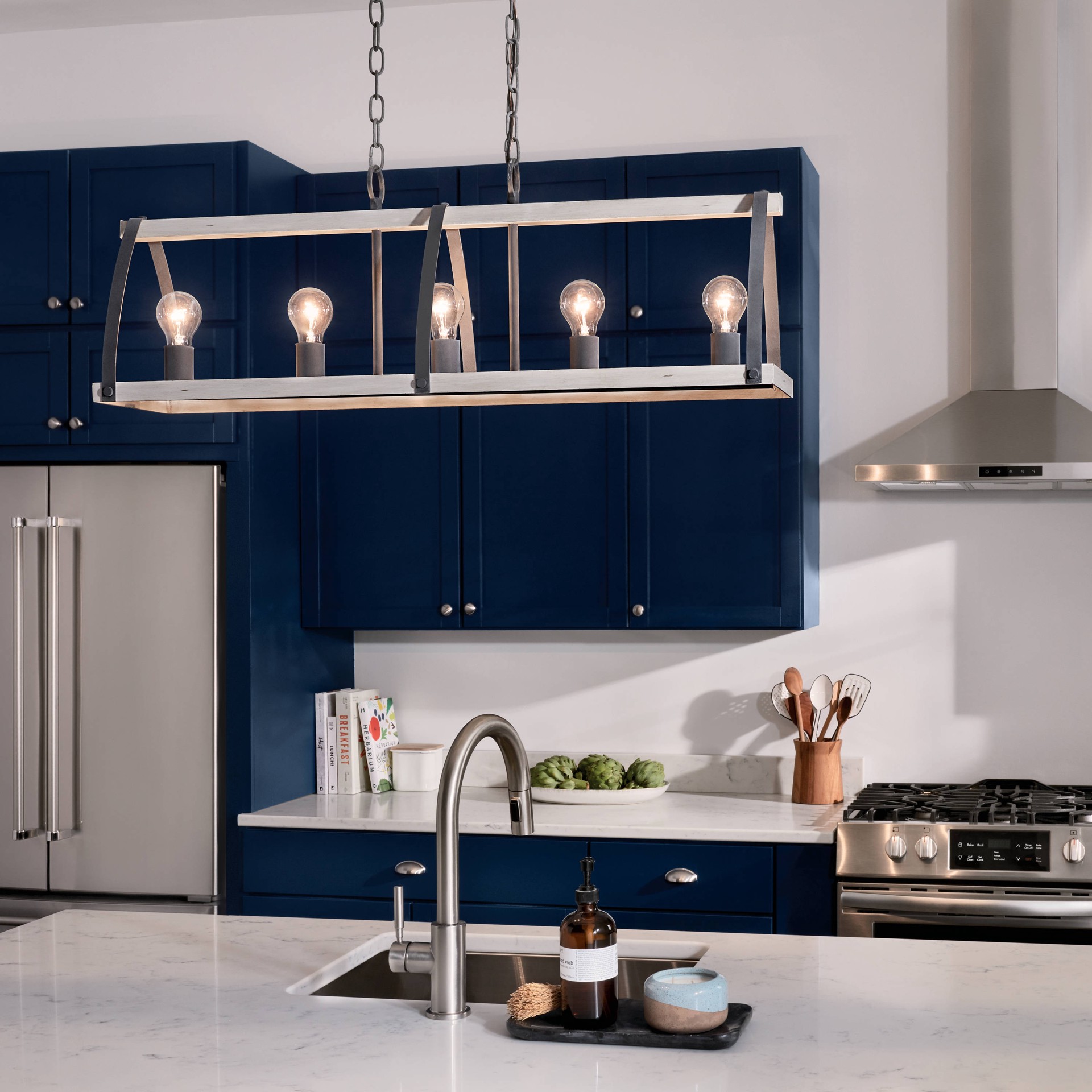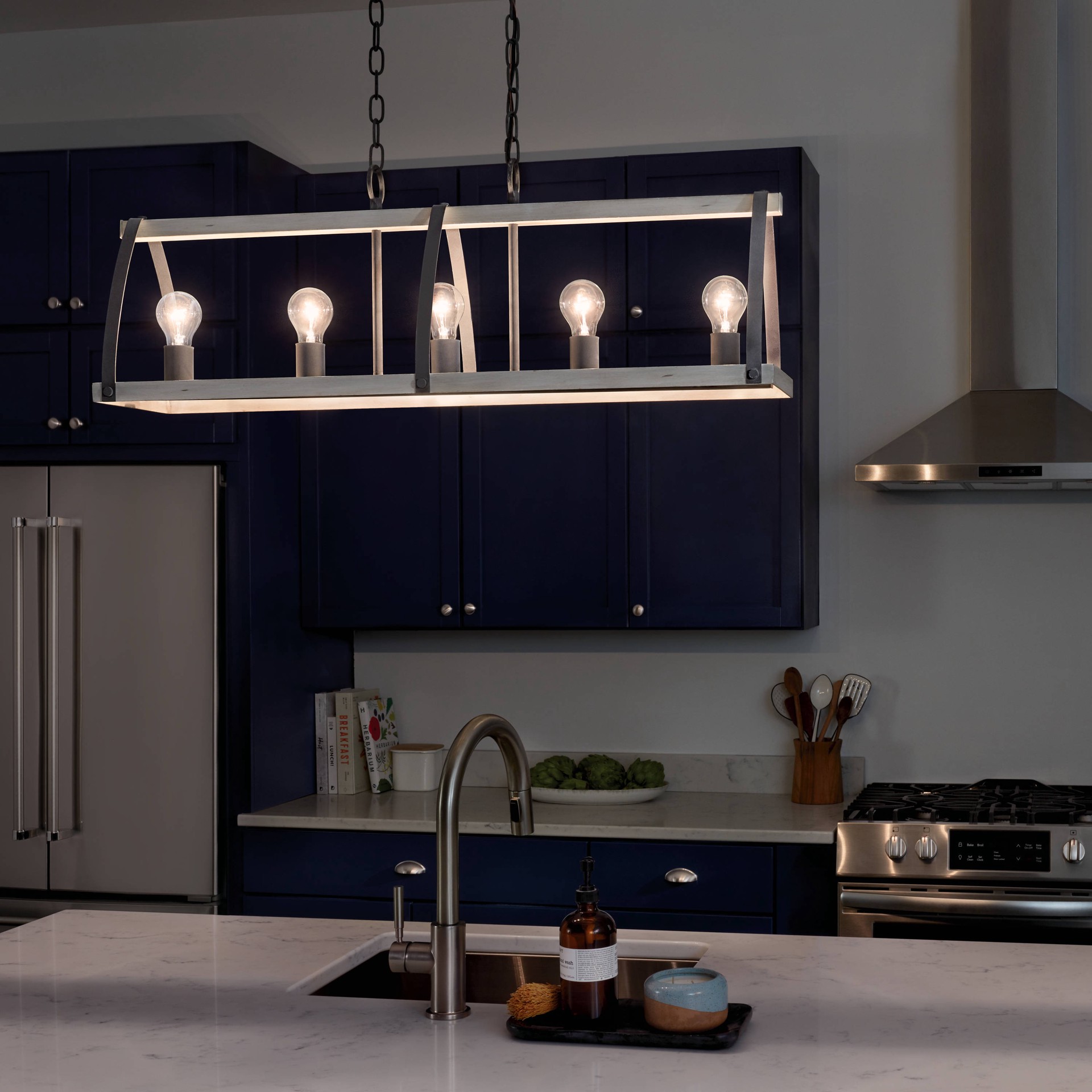 Kichler Gartin 5 -Light Weathered Zinc with White Washed Wood Transitional Linear Large Hanging Kitchen Island Light