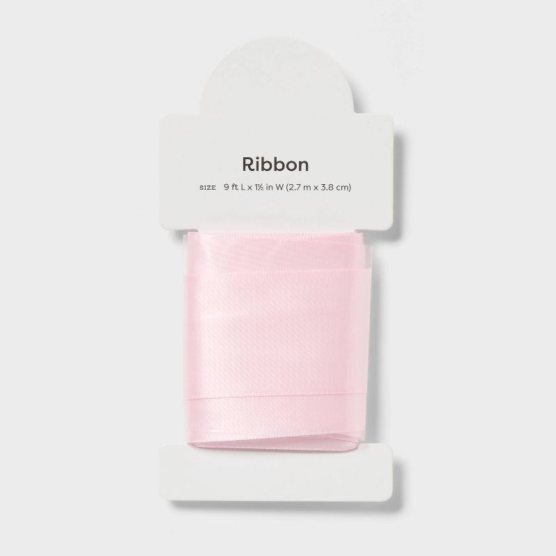 1.5"x9' Satin Gift Wrap Ribbon Light Pink - Spritz™