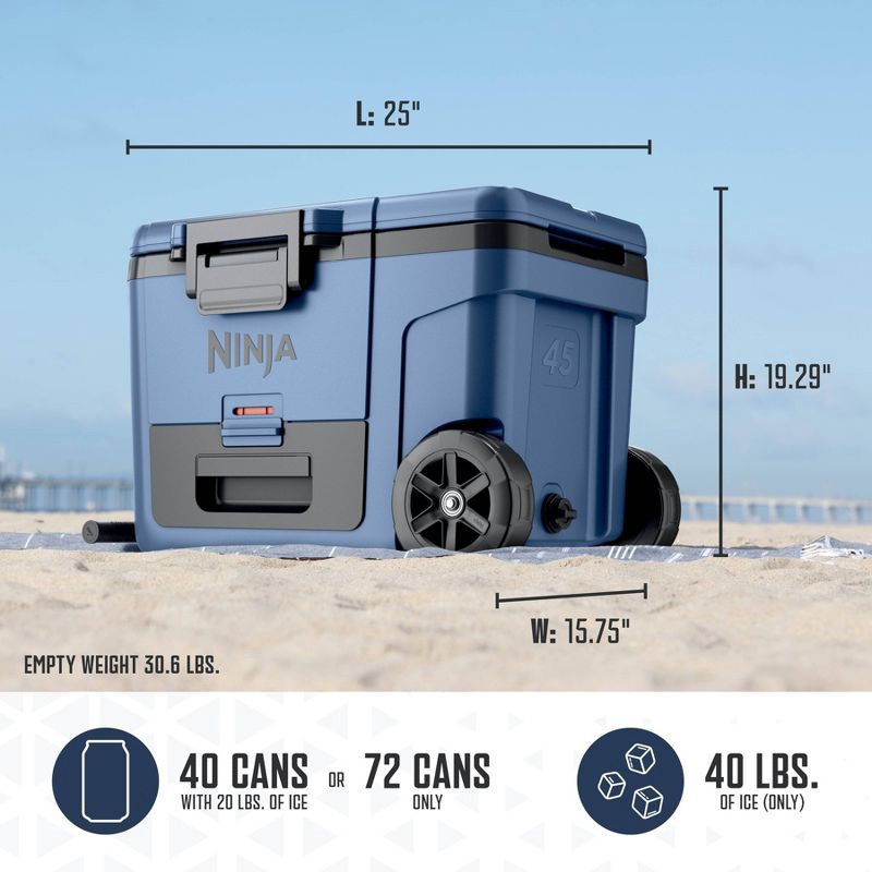 Ninja Outdoor FrostVault 45qt Wheeled Cooler with Cold Dry Zone - Lakeshore Blue: Beverage Cans Capacity 52