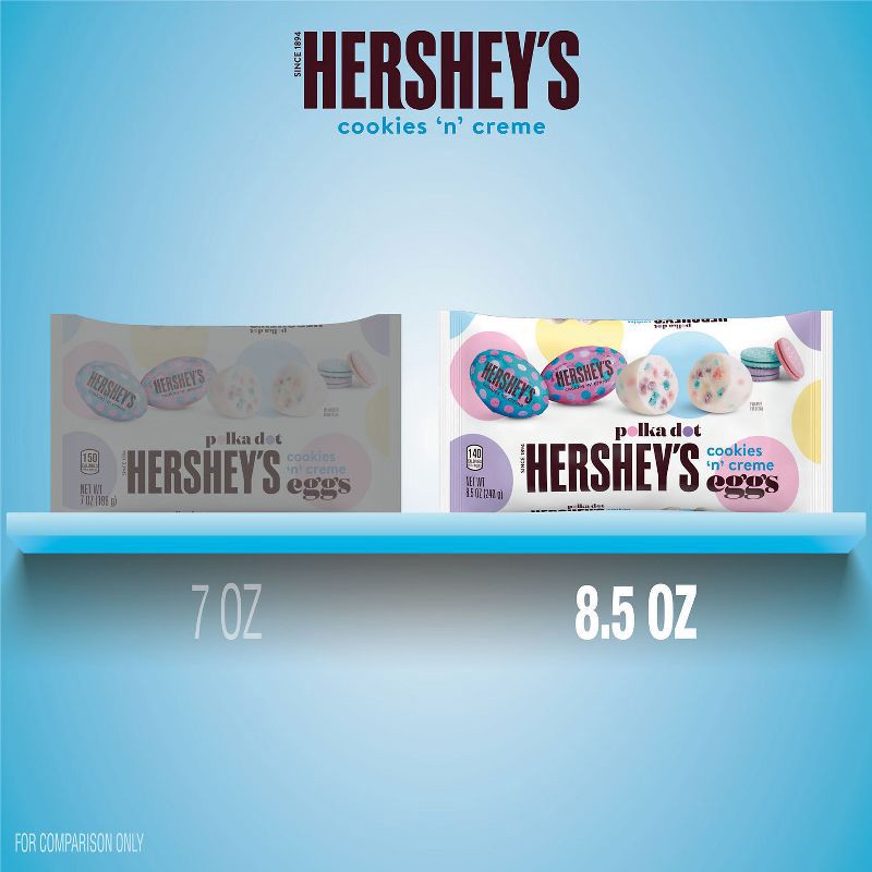- Contains one (1) 8.5-ounce bag of HERSHEY'S Cookies 'n' Creme Polka Dot Eggs Easter Candy