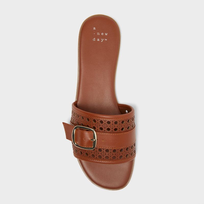 Walk through life in confidence with these Tamar Sandals with Memory Foam Insole from A New Day™. These slip-on sandals feature a single wide band and boas a cushioned insole to provide better arch su…