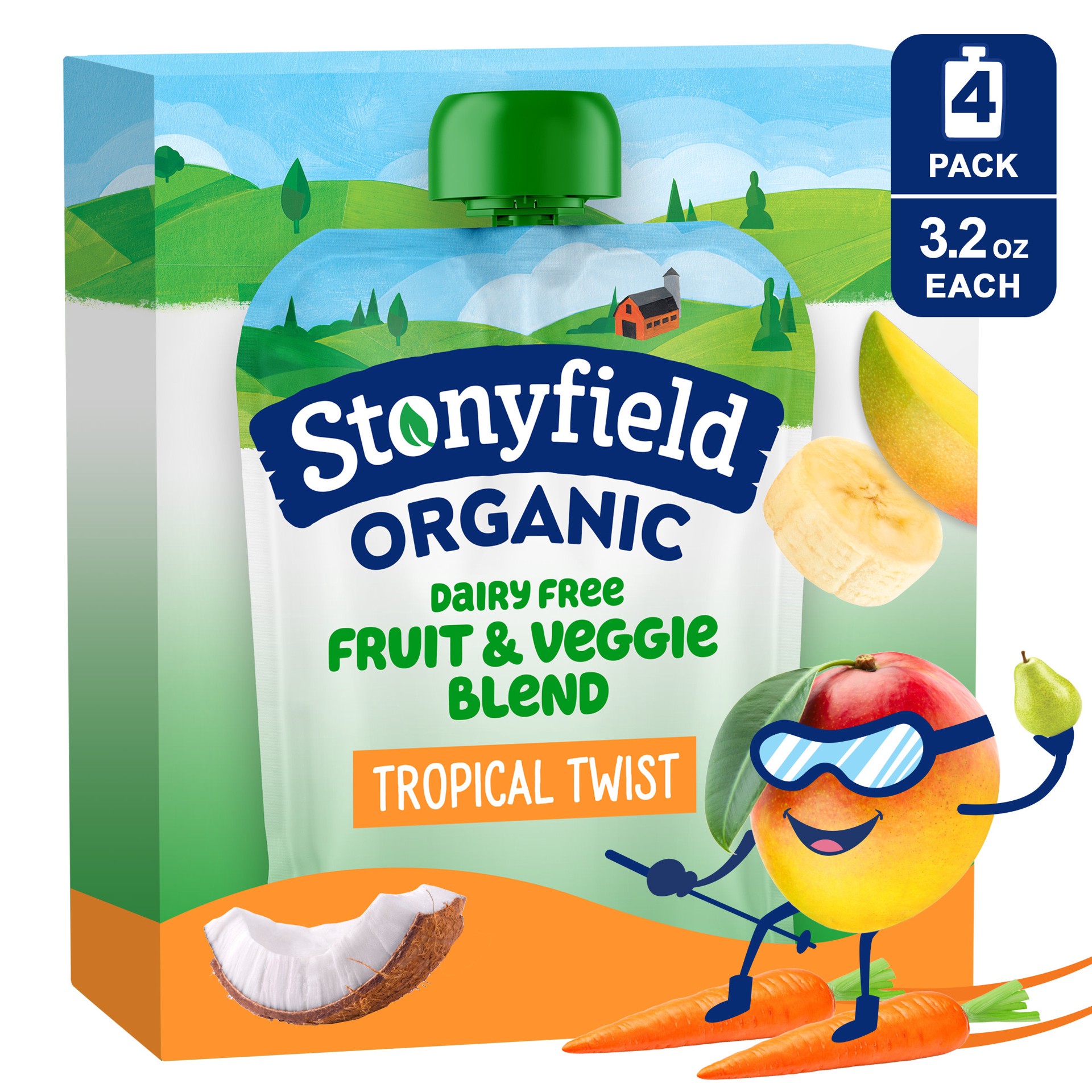- STONYFIELD ORGANIC Tropical Twist Dairy Free Smoothies are a fun and satisfying handheld kids snack for after school fuel or on the go.