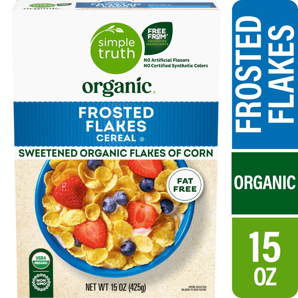 Made with organic corn and organic cane sugar our simple truth organic frosted flakes cereal is deliciously crisp with just the right amount of sweetness have a bowl at breakfast time and enjoy a grea…