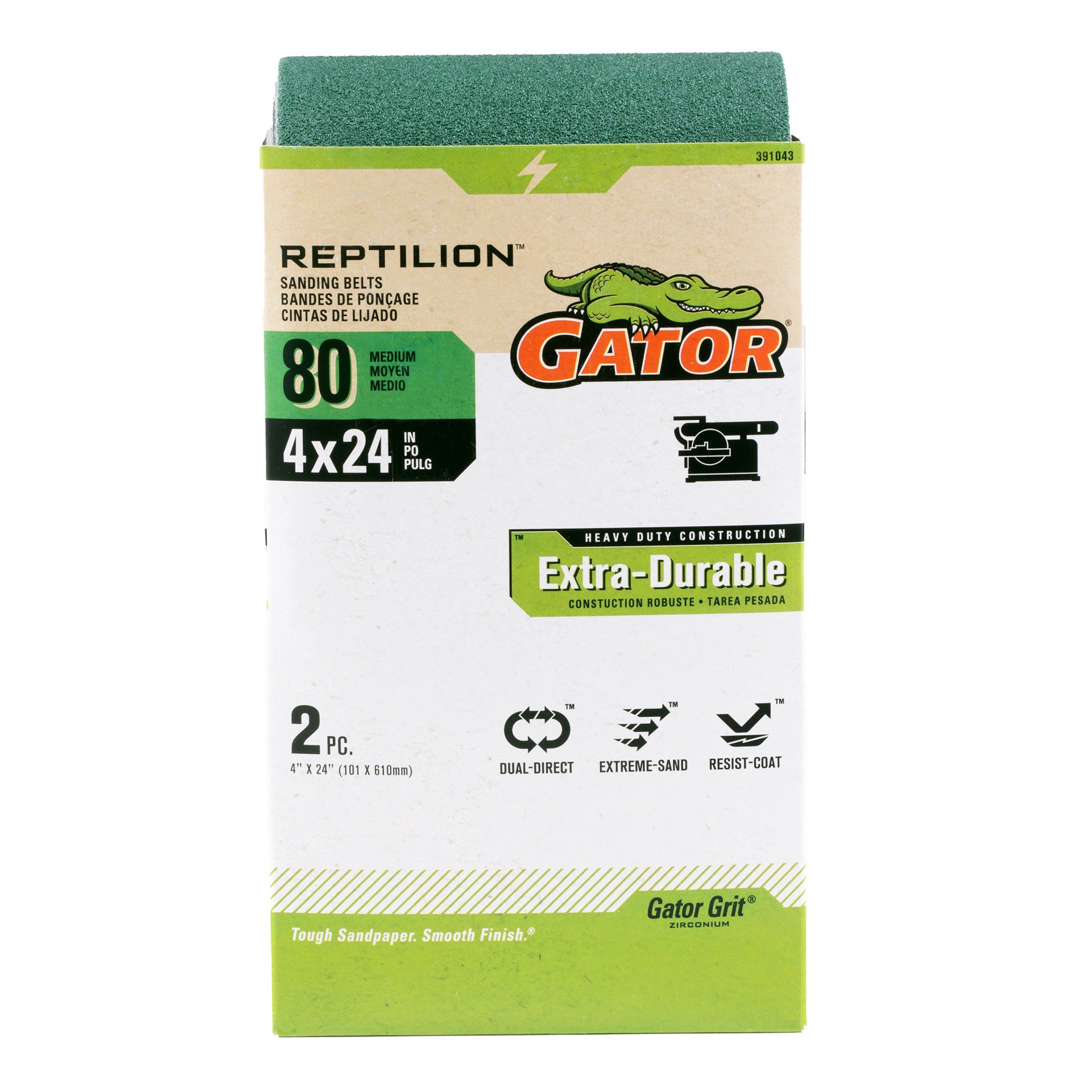 Gator Reptilion 2 -Piece Zirconia alumina 80 -Grit Belt Sandpaper
