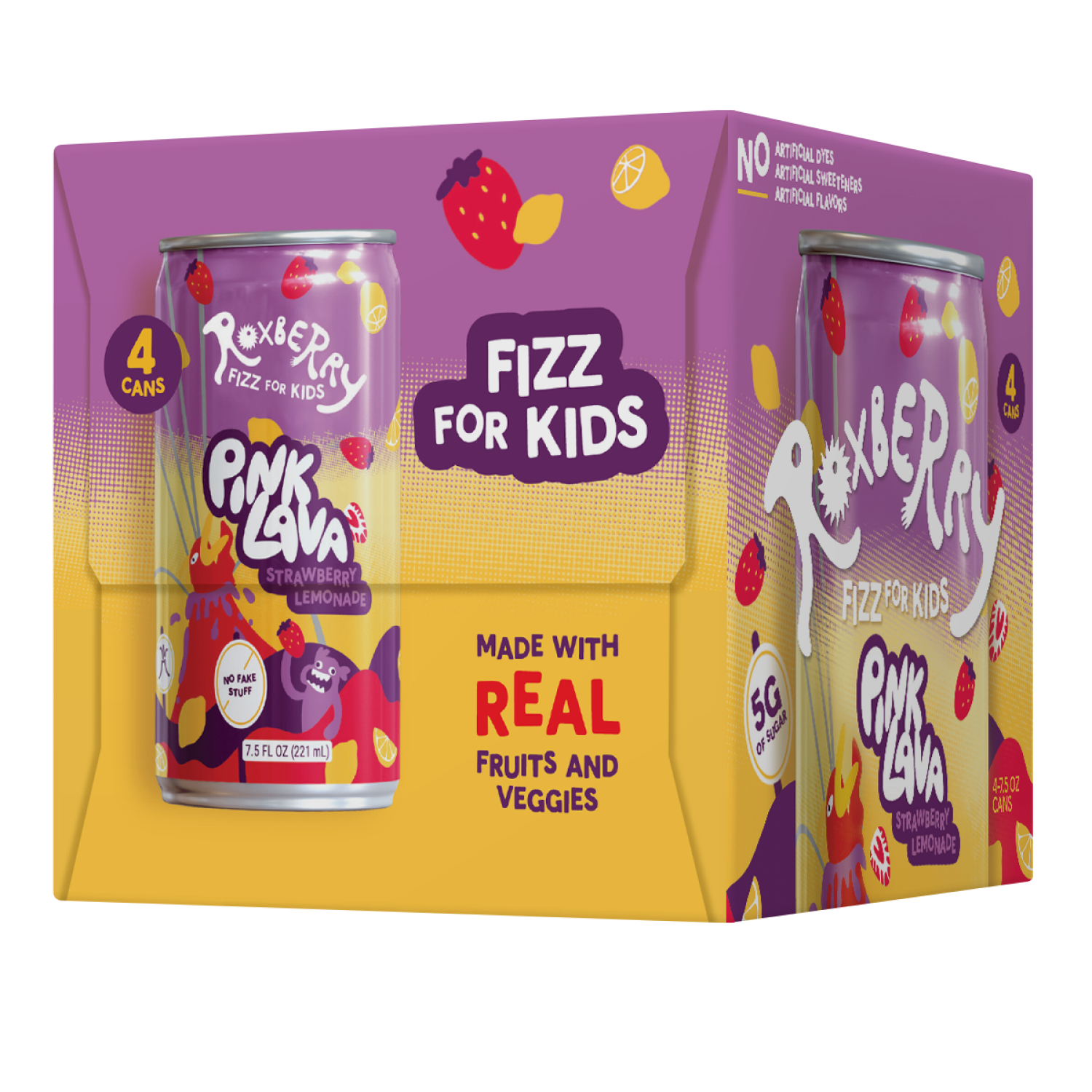 Let your kids dive into the refreshing, fruity world of Roxberry Fizz for Kids Pink Lava Strawberry Lemonade! This sparkling kids drink is not only delicious but also packed with real fruits and veggi…