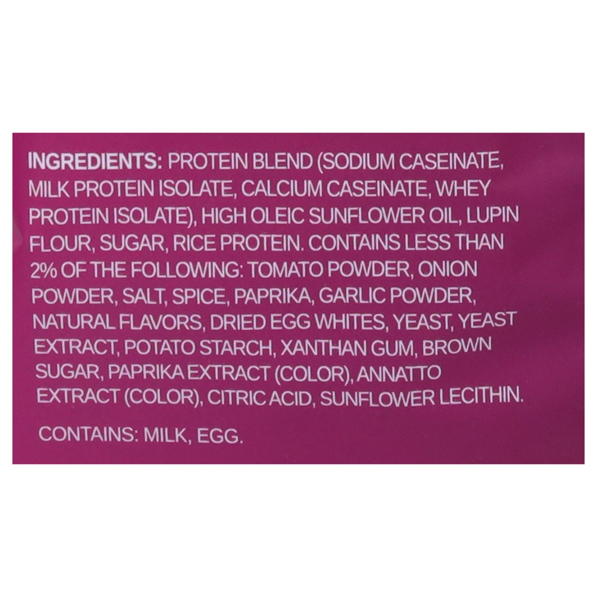 Protein Blend (Sodium Caseinate, Milk Protein Isolate, Calcium Caseinate, Whey Protein Isolate), High Oleic Sunflower Oil, Lupin Flour, Sugar, Rice Protein. Contains Less than 2% of the Following: Tom…