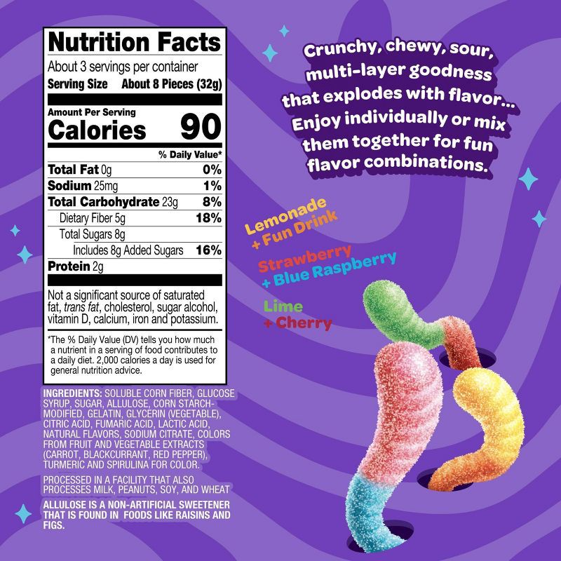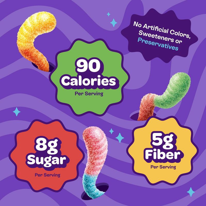 - Less Sugar: Made with 50% less sugar than the leading sour gummy brand, for feel-good treat.