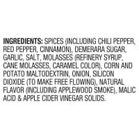 SPICES (INCLUDING CHIU PEPPER, RED PEPPER, CINNAMON), DEMERAAA SUGAR, GARLIC, SALT, MOLASSES (REFINERY SYRUP, CANE MOLASSES, CARAMEL COLOR), CORN AND POTATO MALTODEXTRIN, ONION, SILICON DIOXIDE (TO MA…