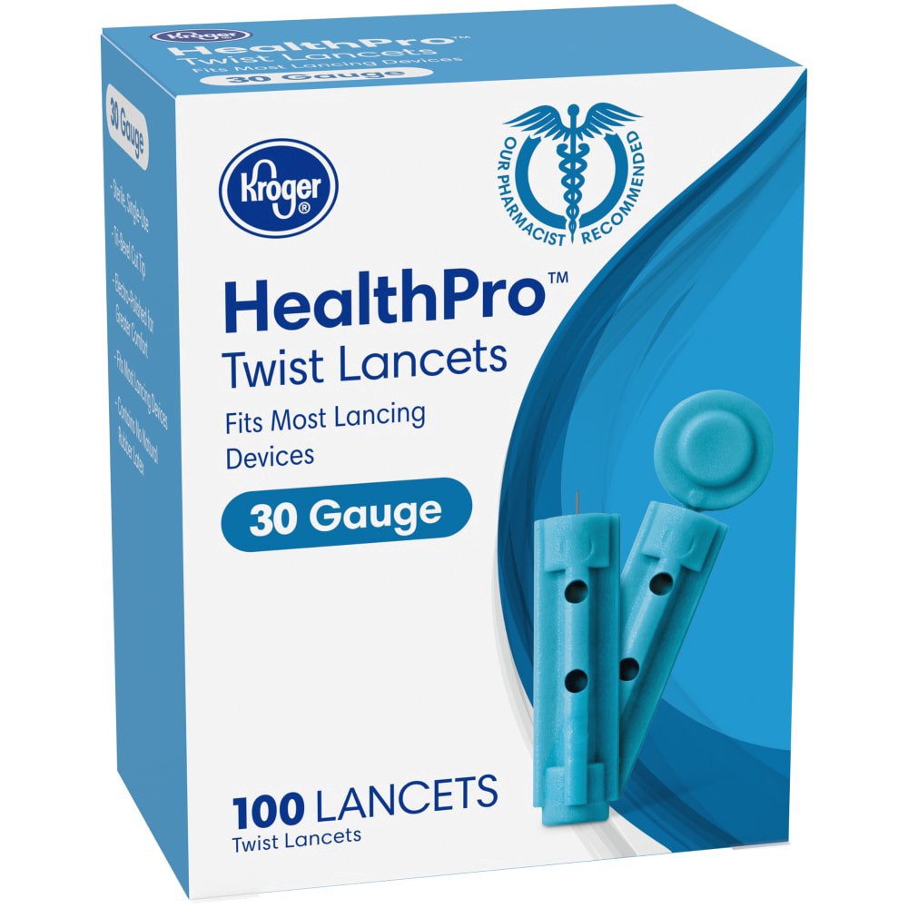Kroger® HealthPro™ Twist Lancets are made with high-quality stainless steel that is triple-bevel cut for a more comfortable experience. Kroger® HealthPro™ Lancets are easy to use and fit most lancing …