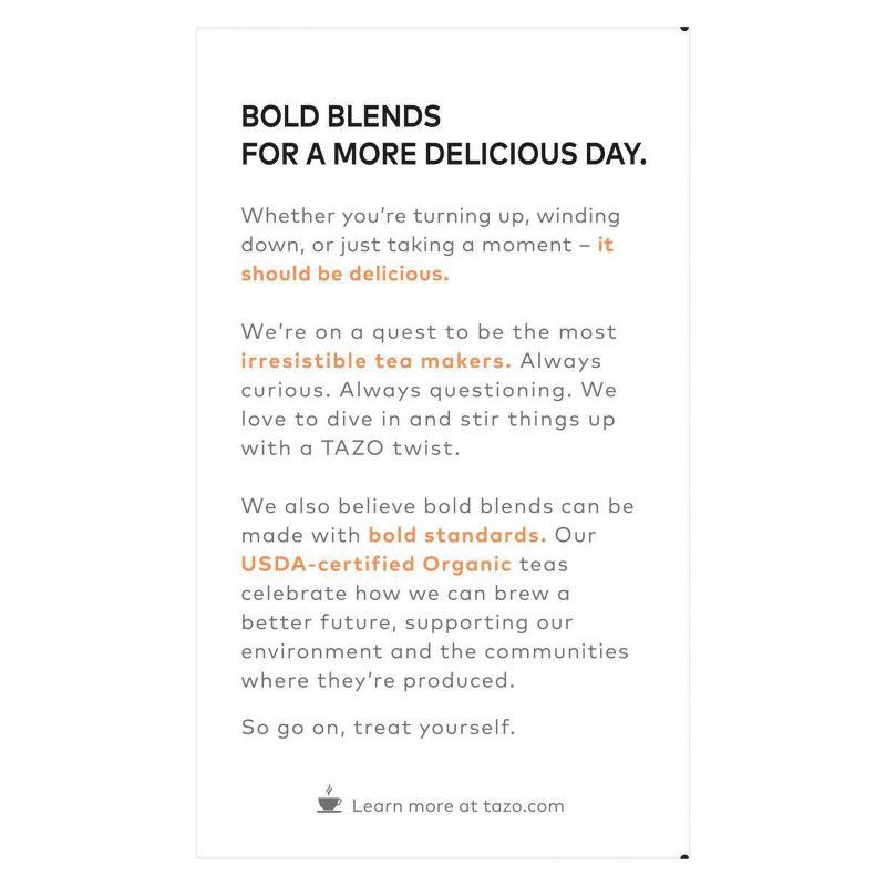 - TRUSTED COMPANY: TAZO Teas are produced without genetic engineering, meeting the Non-GMO Project Standard. Ingredients are expertly sourced giving a taste for you to savor