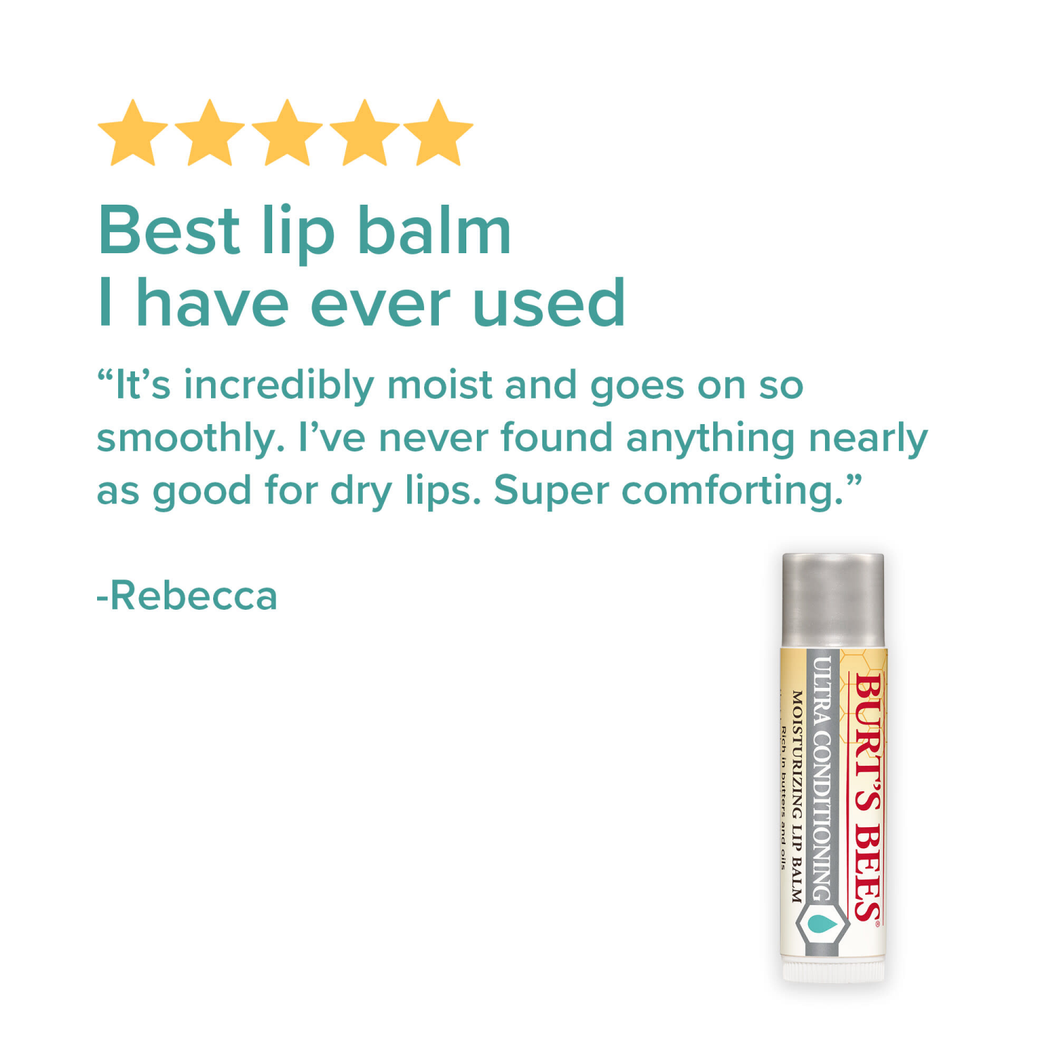 - ULTRA CONDITIONING LIP BALM: One package contains one 0.15 oz. lip balm tube of Burt’s Bees Ultra Conditioning Moisturizing Lip Balm to hydrate and condition dry lips