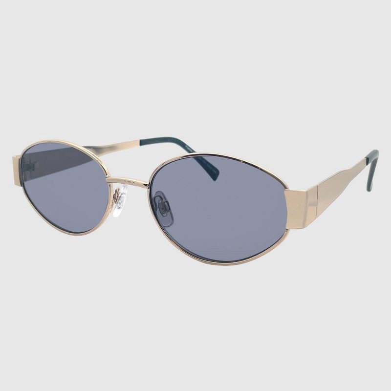 Metal sunglasses from Wild Fable™ in an oval shape with adjustable nose pads for comfort. Gold-tone full-rim frame with black lenses. Offer maximum UV protection to keep eyes shielded from harmful sun…