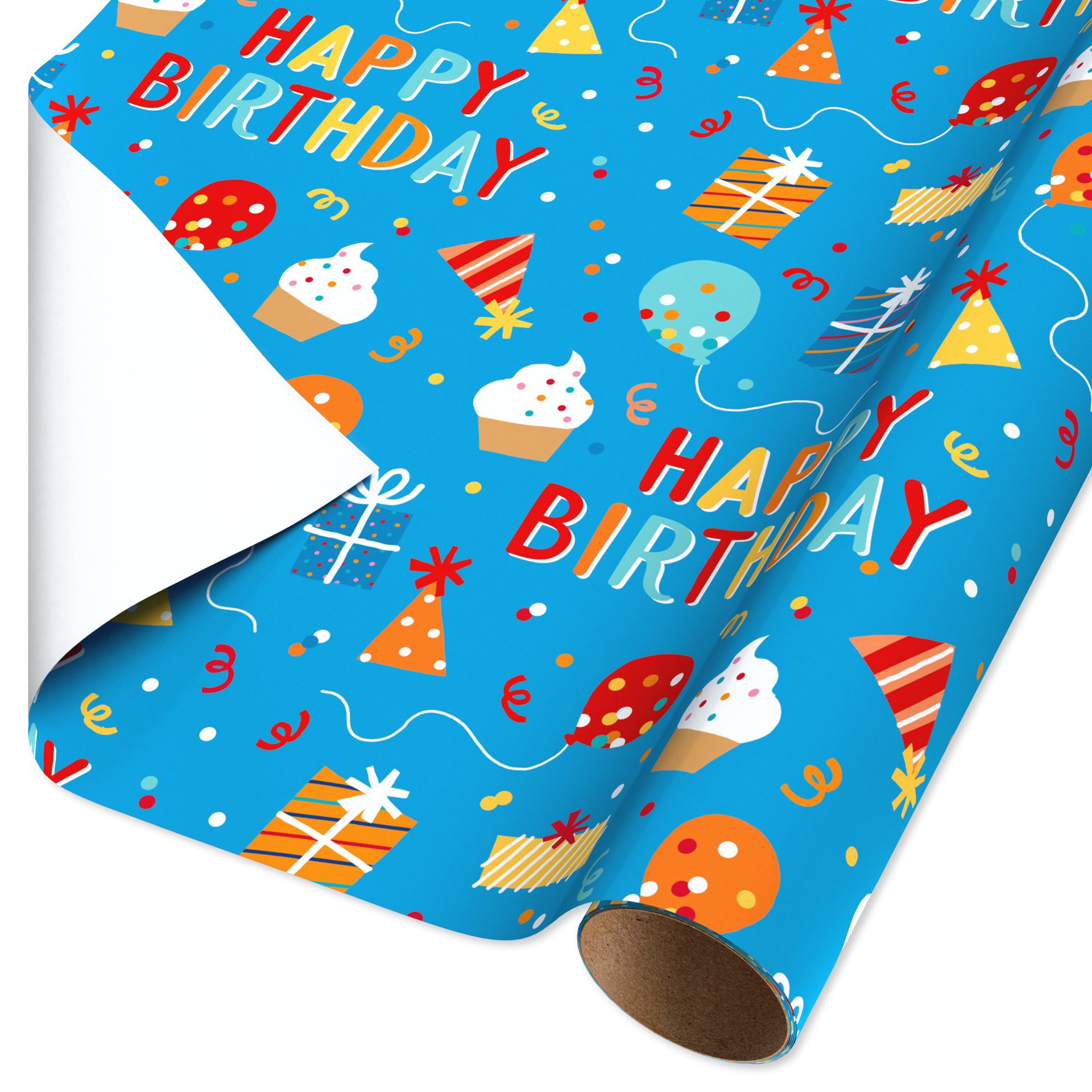 American Greetings Birthday Celebration Blue Wrapping Paper, 20 sq. ft.