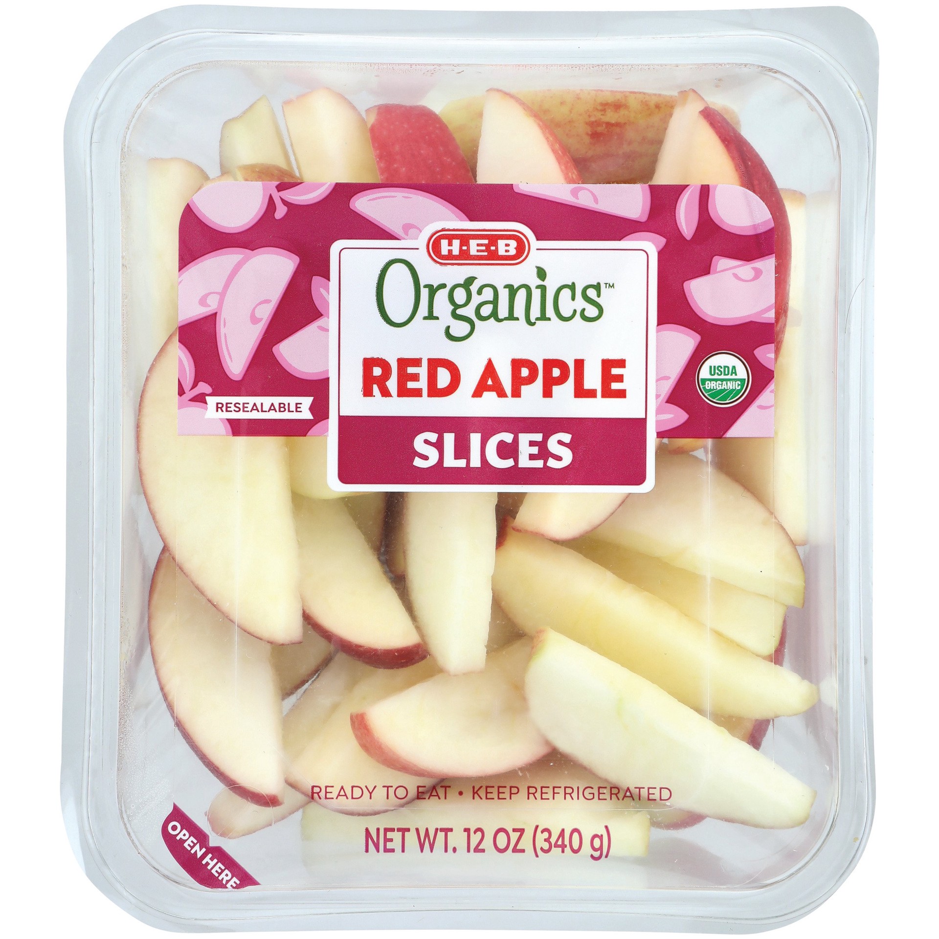 Ready to enjoy and sliced for your convenience, these H-E-B Organics red apples are crisp with a juicy-sweet taste. Plus, the slices come in a resealable container for now-and-later snacking.• Fresh r…