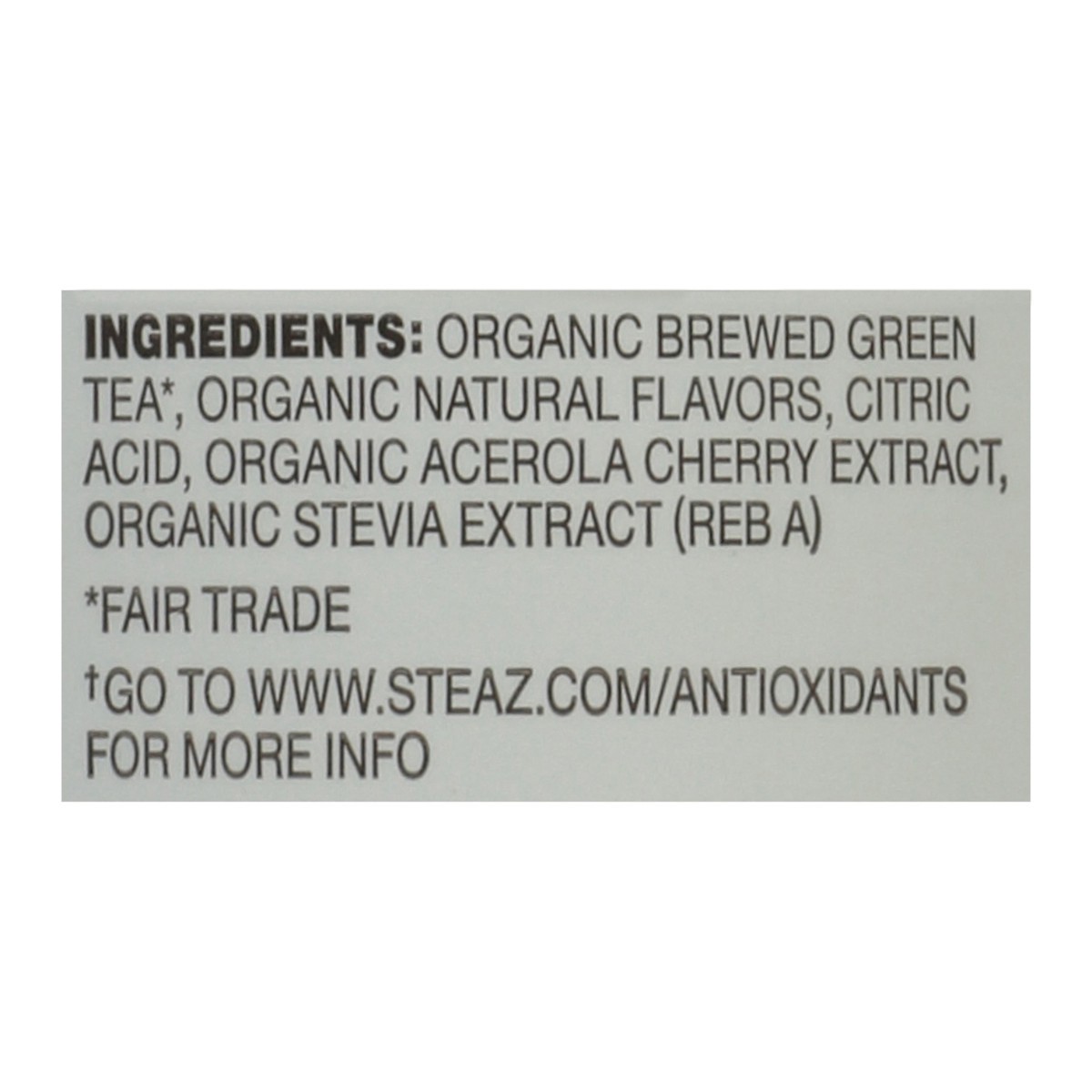 Organic Brewed Green Tea (Fair Trade), Organic Natural Flavors, Citric Acid, Organic Acerola Cherry Extract, Organic Stevia Extract (Reb a).