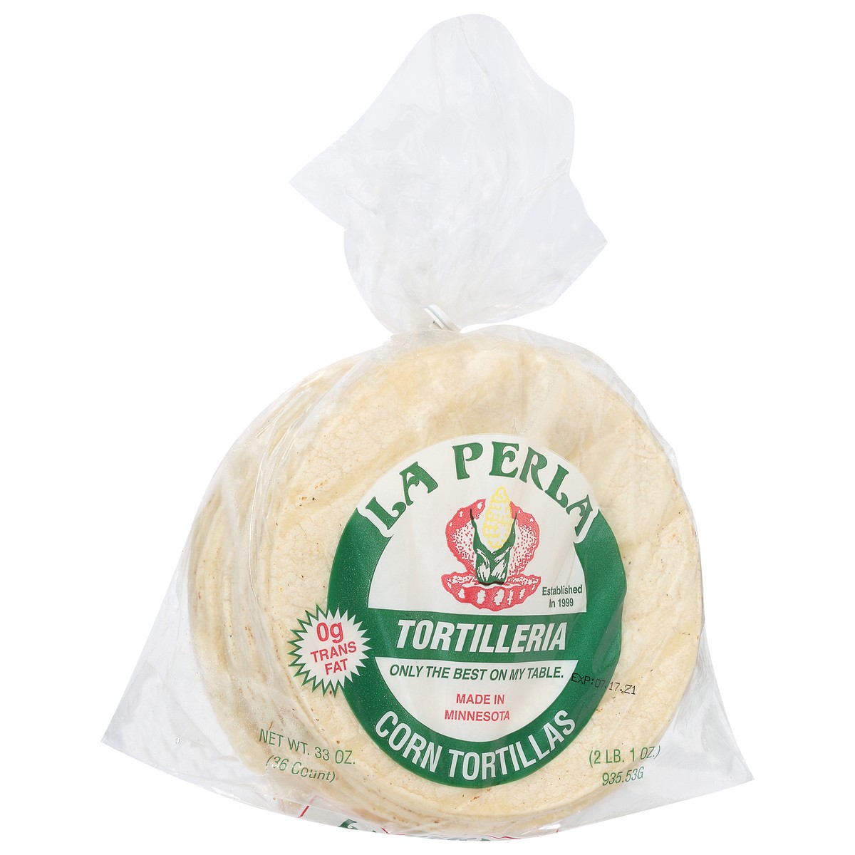 0 g sat fat. Established in 1999. Only the best on my table. www.tortillaperla.com. Made in Minnesota.