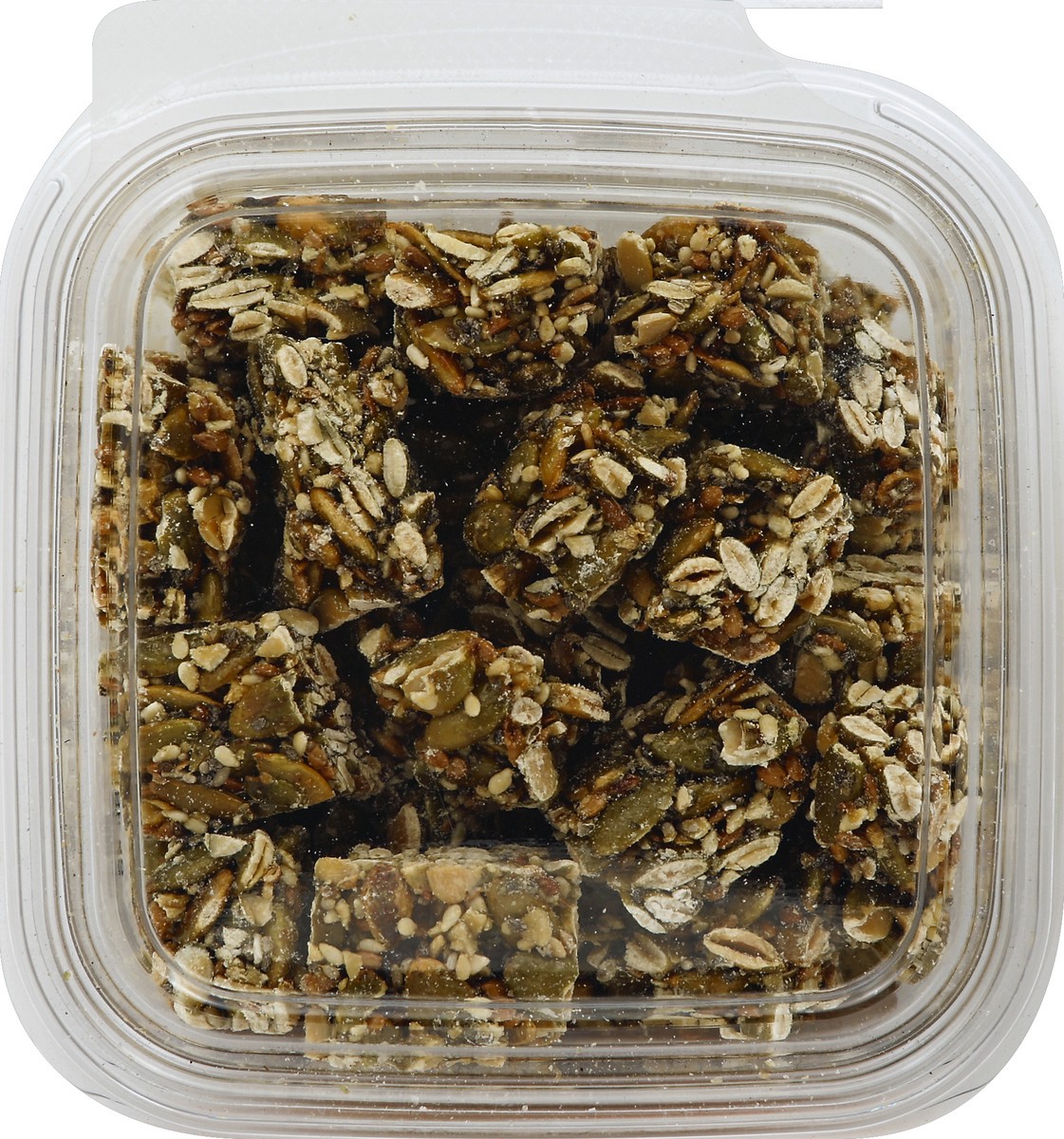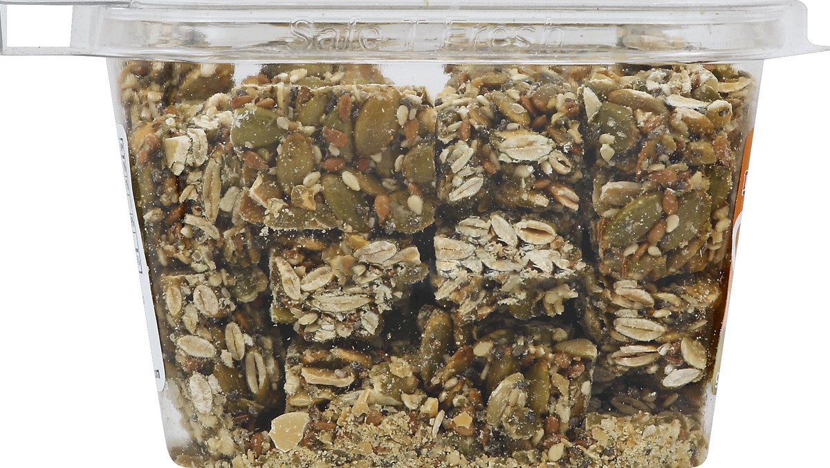 Pumpkin Seeds, Flaxseed, White Sesame Seeds, Evaporated Cane Juice, Rice Syrup (Rice, Rice Malt, Water), Chia Seeds, Honey, Sea Salt.