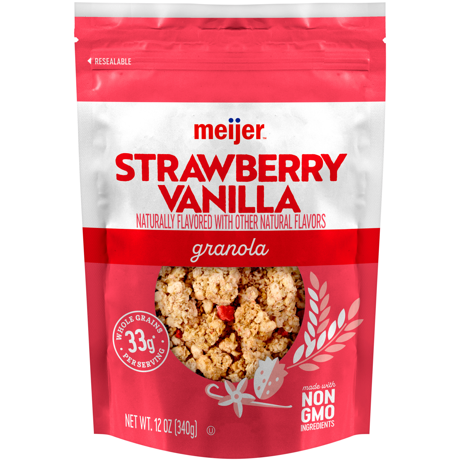 Meijer Strawberry Vanilla Granola, naturally flavored to perfection, is a good source of dietary fiber and contains 33 grams of whole grains per serving. This delicious versatile product can be enjoye…