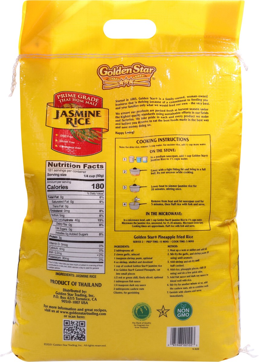 Golden Star Rice Jasmine Prime Grade - 20 Lb
