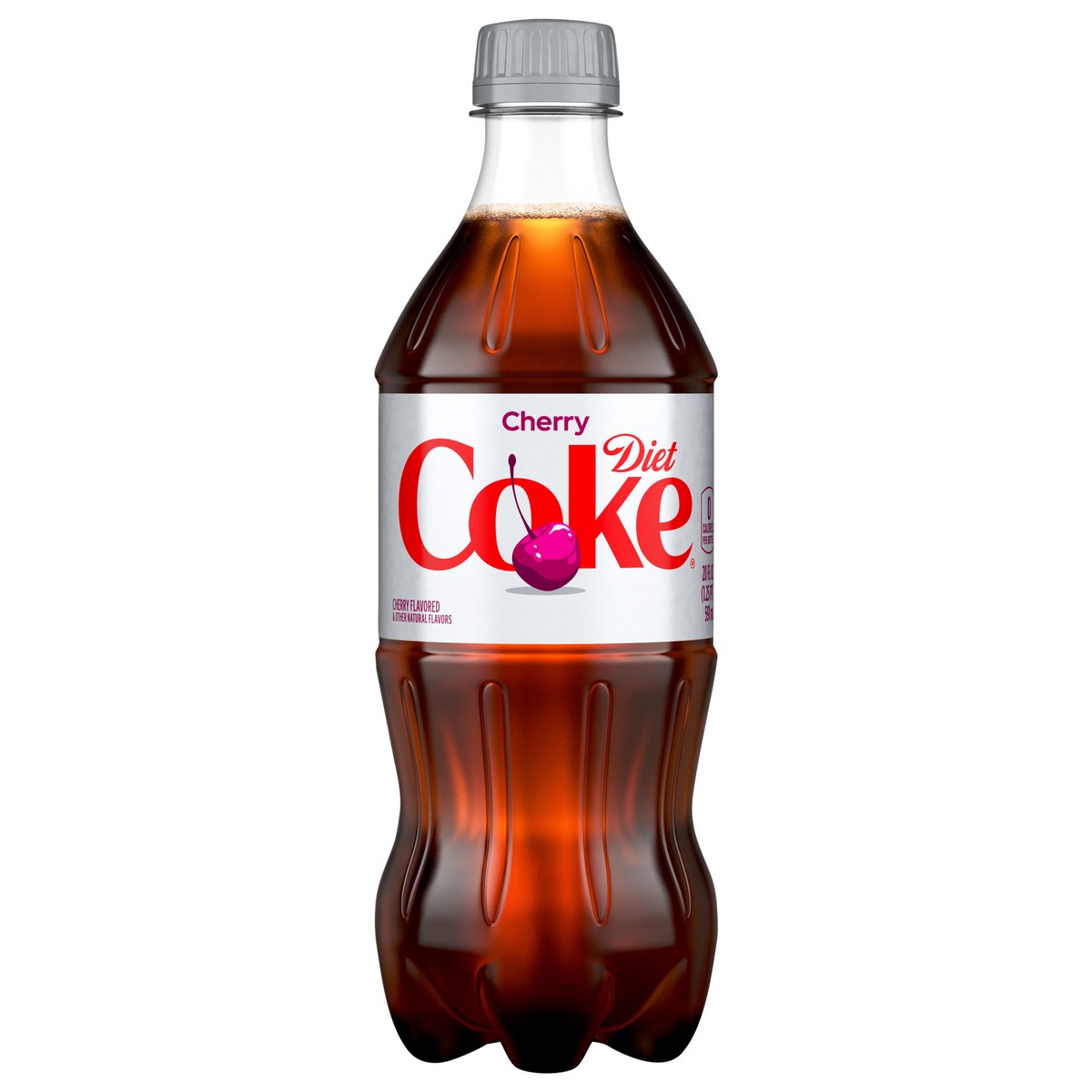 - Diet Cherry Coke-the diet soda you love with very cherry flavorAvailable exclusively at the Kroger Family of Stores for a limited time onlyEnjoy the great taste of Diet Cherry Coke, a diet cola with no sugar and no caloriesTake a Diet Coke break with this refreshing cherry-flavored soft drink56.5 mg of caffeine in each 20 fl oz serving20 fl oz bottle of Diet Cherry Coke