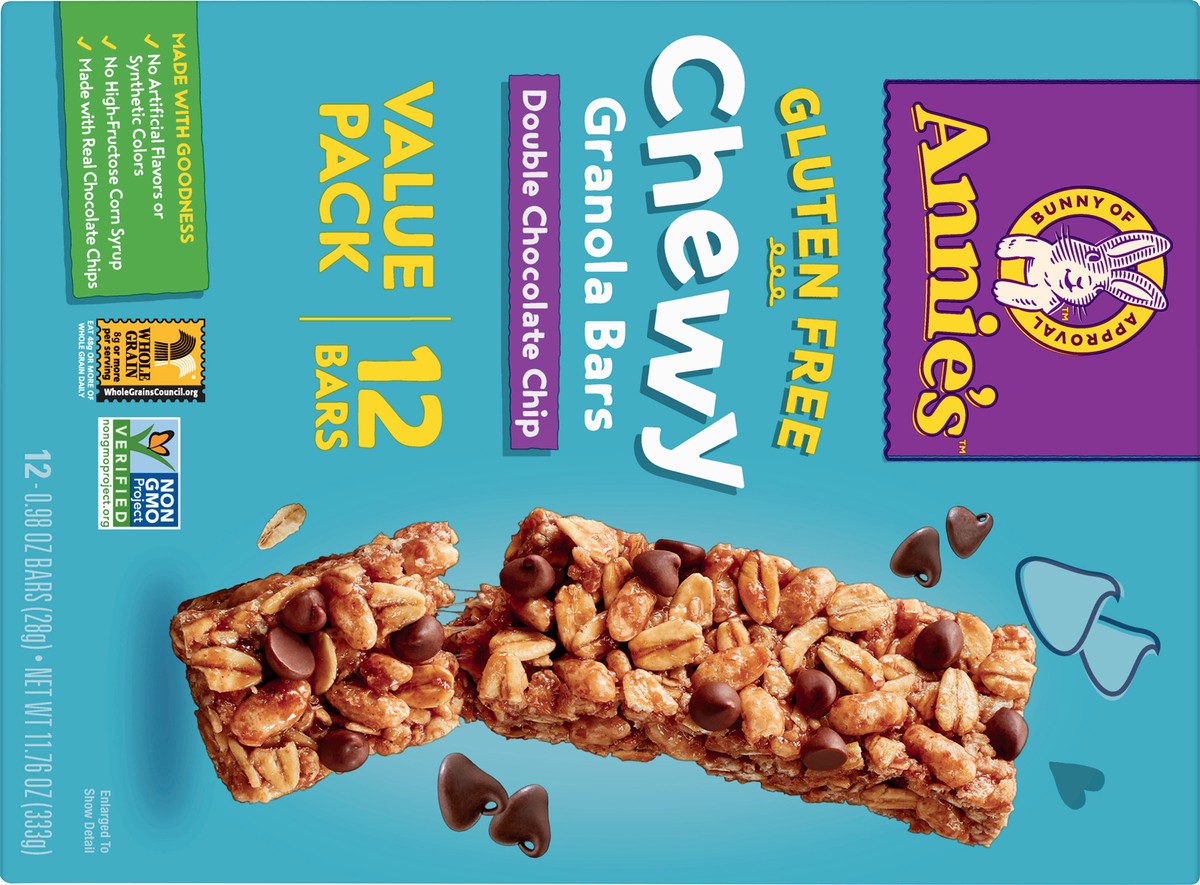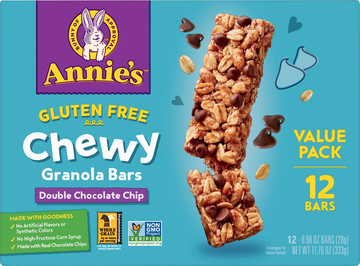 Meet your go-to gluten-free granola bar! Annie's Gluten Free Double Chocolate Chip Granola Bars pack an undeniably delicious chocolaty taste and chewy texture. Each snack bar is made with whole-grain …
