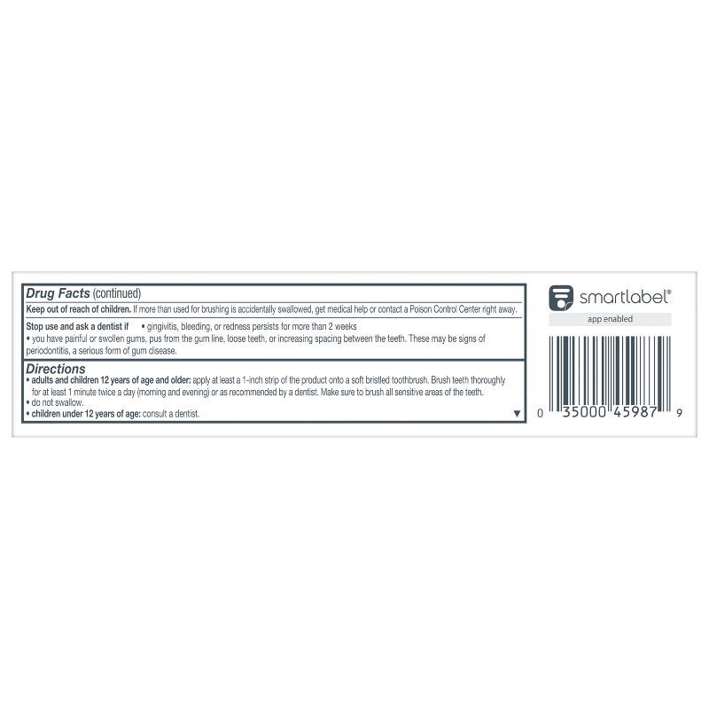 Active Ingredients: Stannous Fluoride (0.15% w/v Fluoride Ion) (0.454%). Purposes: Anticavity, Antigingivitis, Antisensitivity. Inactive Ingredients: Water, Sorbitol, Hydrated Silica, Glycerin, PEG-12…