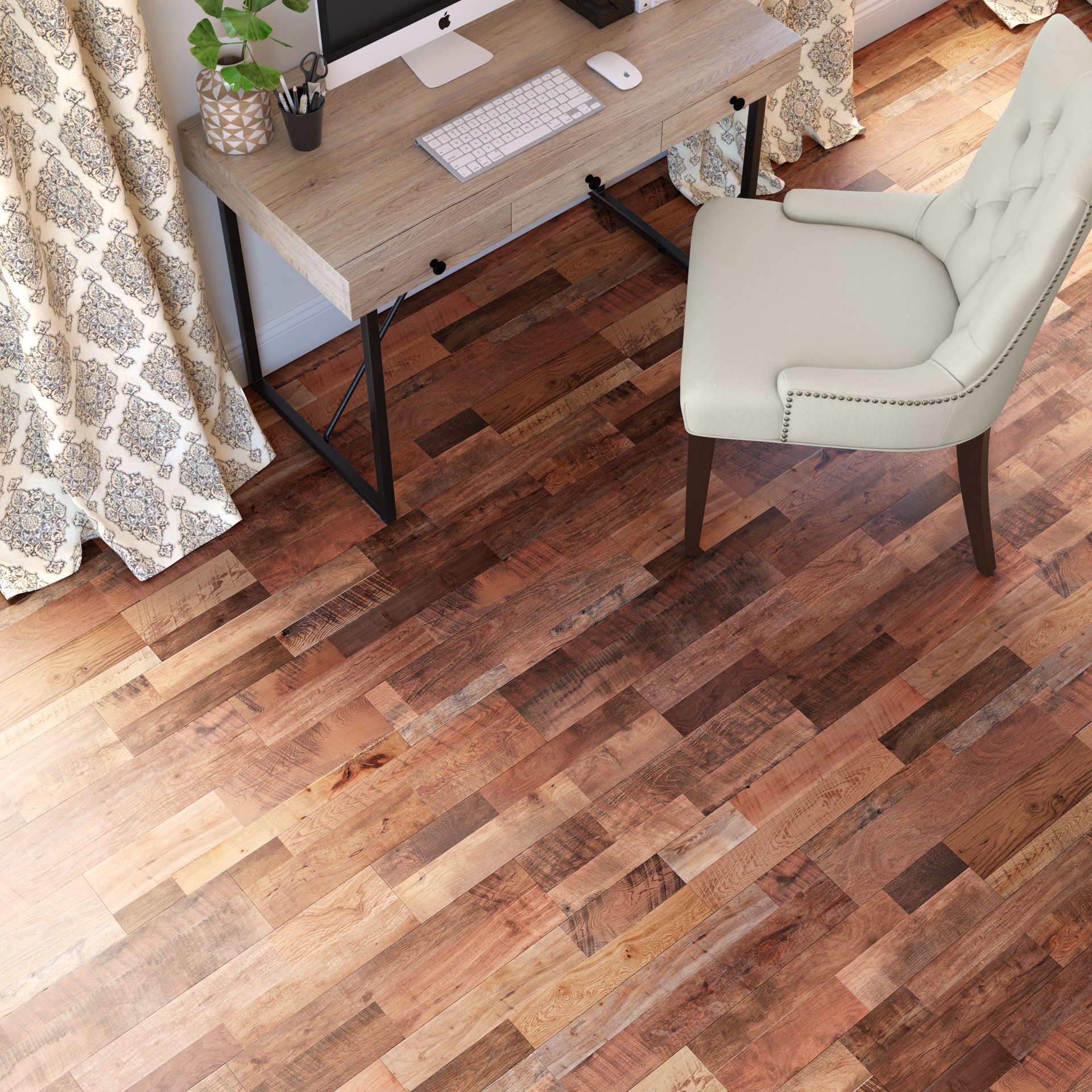 Quick-Step Studio Restoration Oak laminated wood flooring features a variety of colors and natural texturing that replicates the look of reclaimed wood. QuickStep Studio® waterproof laminate flooring …