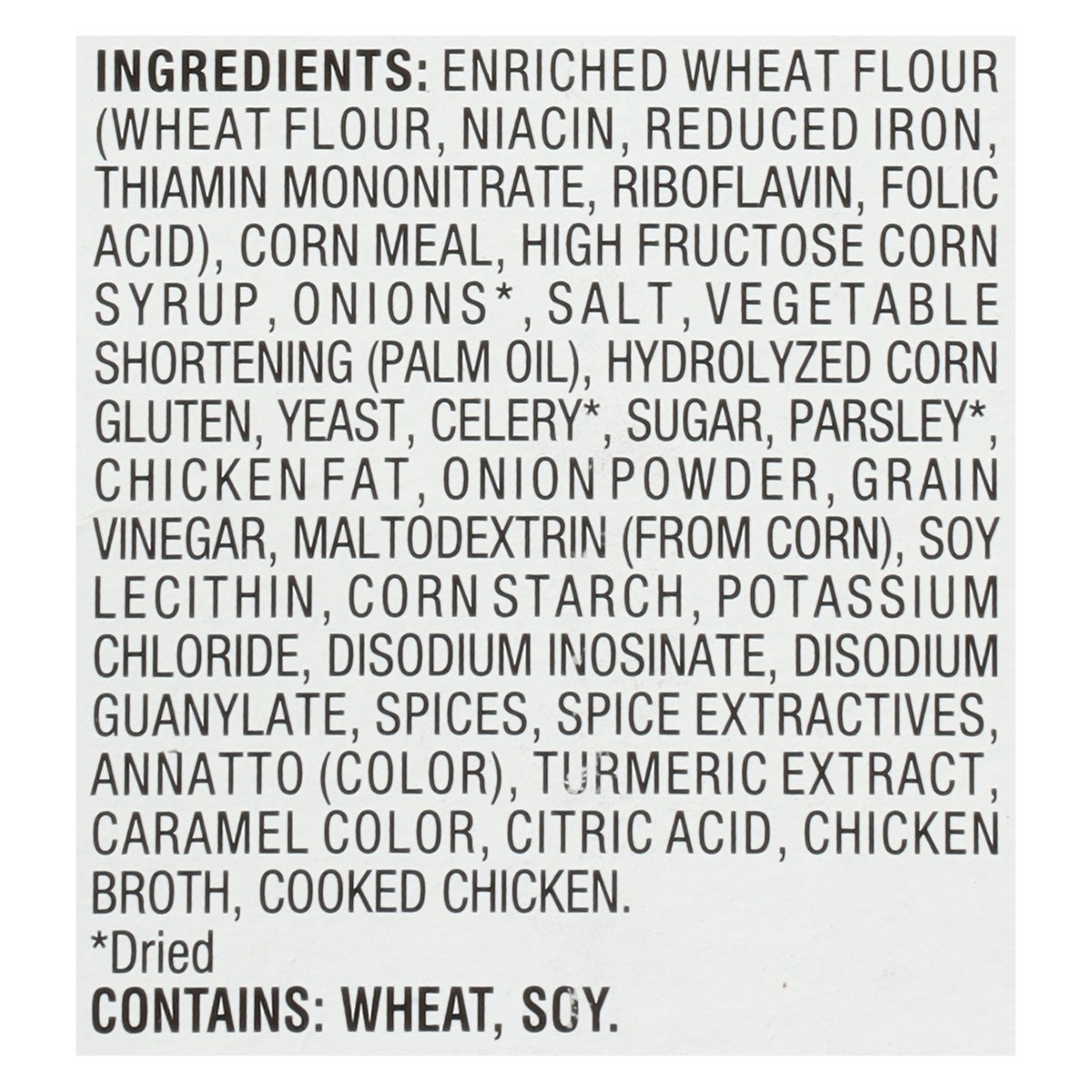 Enriched Wheat Flour (Wheat Flour, Niacin, Reduced Iron, Thiamin Mononitrate, Riboflavin, Folic Acid), Corn Meal, High Fructose Corn Syrup, Onions (Dried), Salt, Vegetable Shortening (Palm Oil), Hydro…