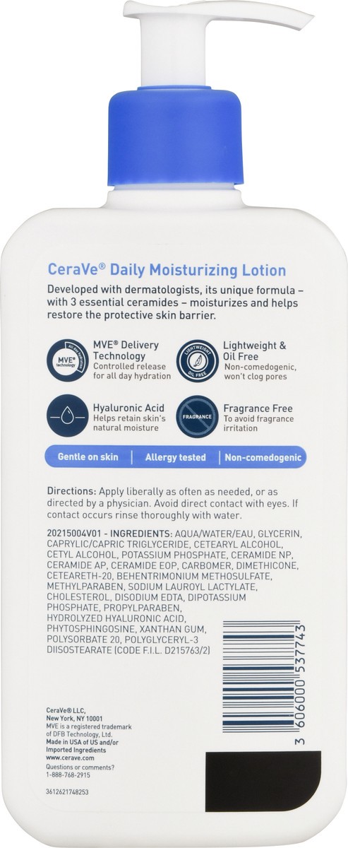Developed with dermatologists, CeraVe Daily Moisturizing Lotion has a unique, lightweight formula that provides 24-hour hydration and helps restore the protective skin barrier with three essential cer…
