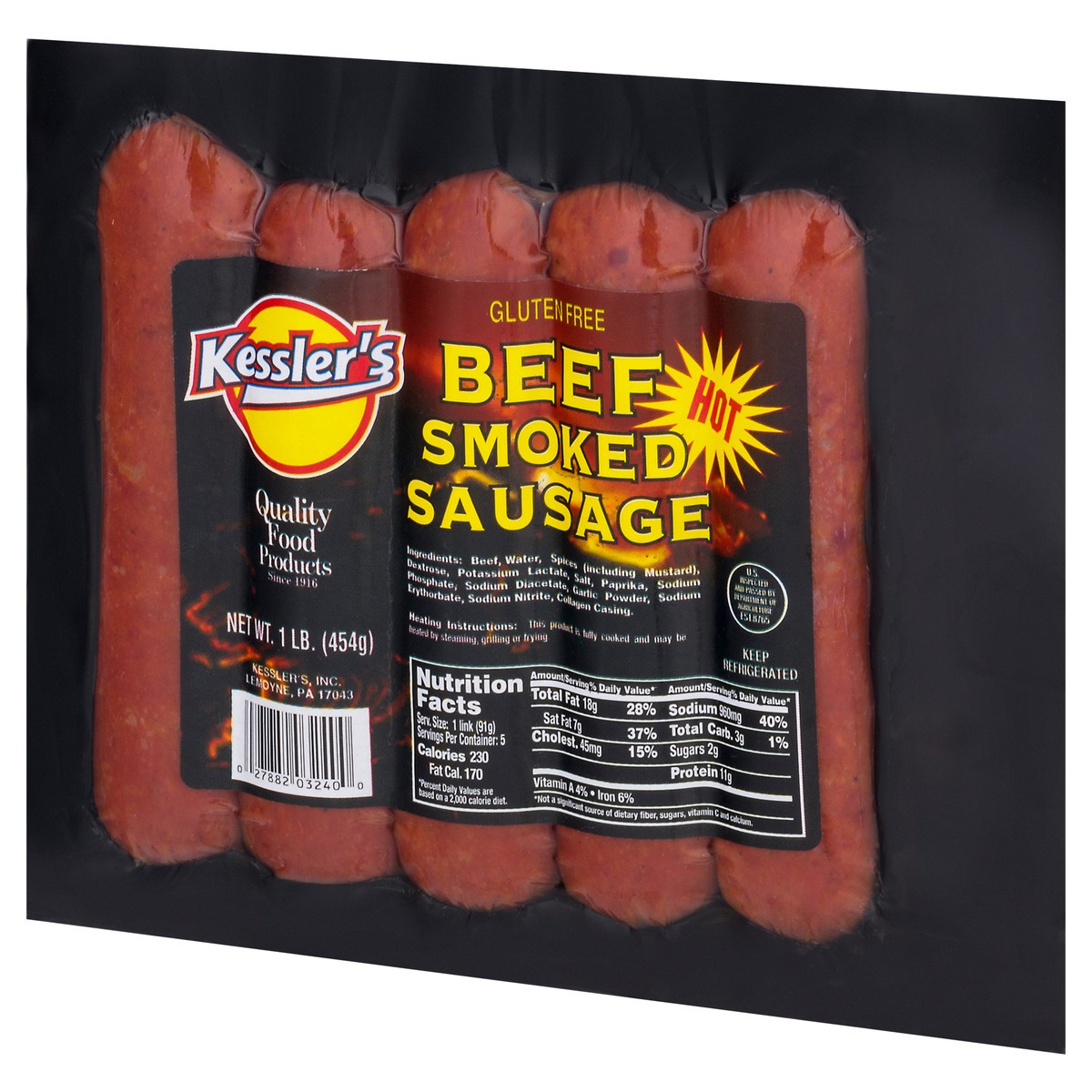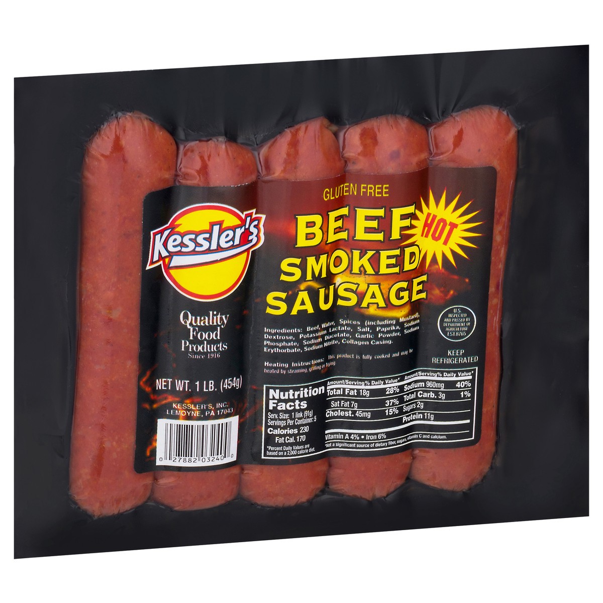 Kessler's Hot Beef Smoked Sausage 1 lb