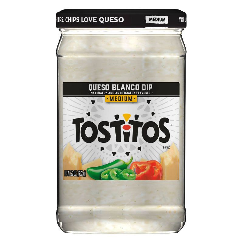 - Includes 1 (23 oz) of Tostitos Medium Dip, Queso Blanco Naturally And Artificially Flavor