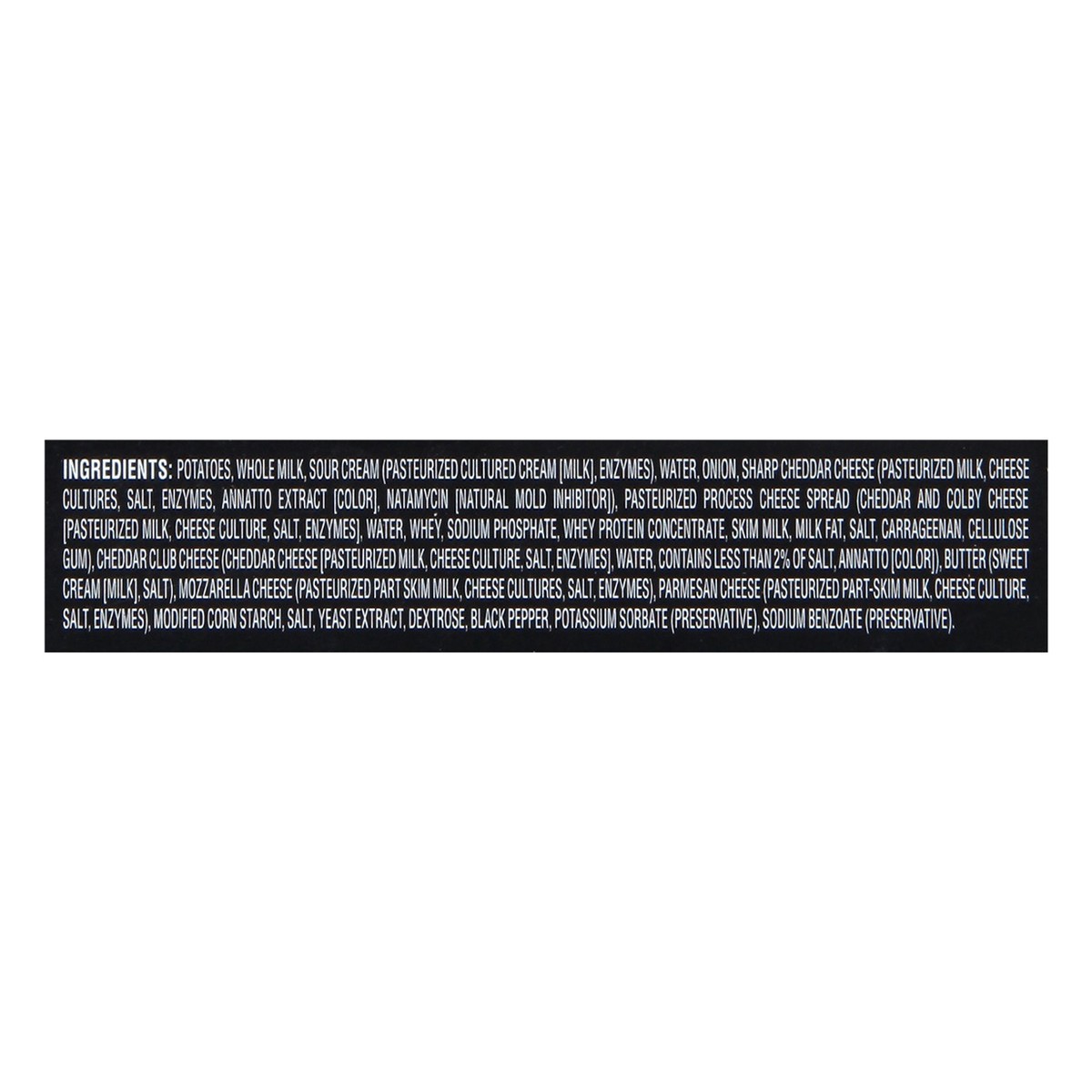 Potatoes, Whole Milk, Sour Cream (Pasteurized Cultured Cream (Milk), Enzymes), Water, Onion, Sharp Cheddar Cheese (Pasteurized Milk, Cheese Cultures, Salt, Enzymes, Annatto Extract [Color], Natamycin …