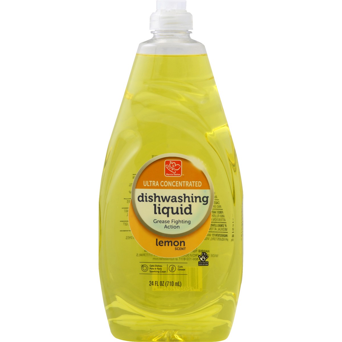 Grease fighting action. Gets dishes, pots & pans sparkling clean. Cuts grease. harristeeter.com. Together in Education. Made in USA from domestic and foreign materials.
