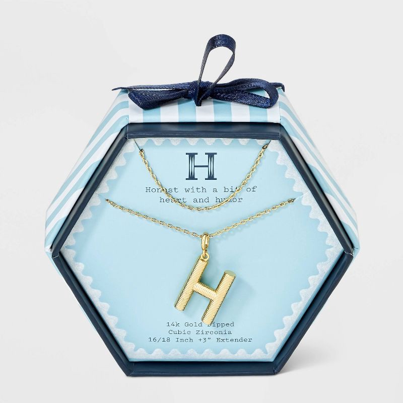 14K Gold Dipped Cubic Zirconia Duo H Initial Multi-Strand Necklace - A New Day™ Gold